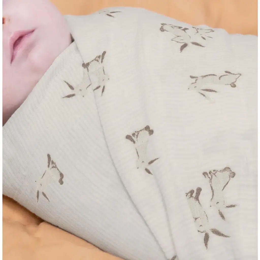 Experience the embrace of nature with the Garcia Organic Muslin Cotton Bunny Swaddle. Crafted from 100% GOTS certified organic cotton, this swaddle blanket offers your baby unrivaled comfort and safety. The whimsical bunny design, in muted earth tones, adds a touch of enchantment to your baby's swaddle collection. Choose organic cotton for a gentle and soothing swaddling experience.