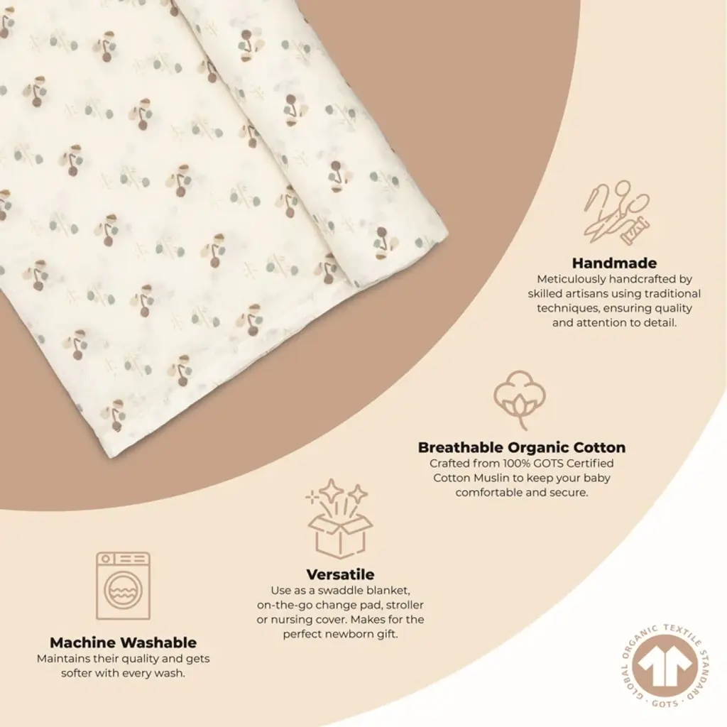 Wrap your baby in the softness of the Garcia Organic Muslin Cotton Poppy Swaddle. Made from 100% GOTS certified organic cotton, this swaddle blanket provides the perfect cocoon of softness and safety. The intricate Poppy pattern, reminiscent of the outdoors, creates a serene atmosphere for swaddling your baby. Opt for organic for a gentle start to your baby's sleep journey.