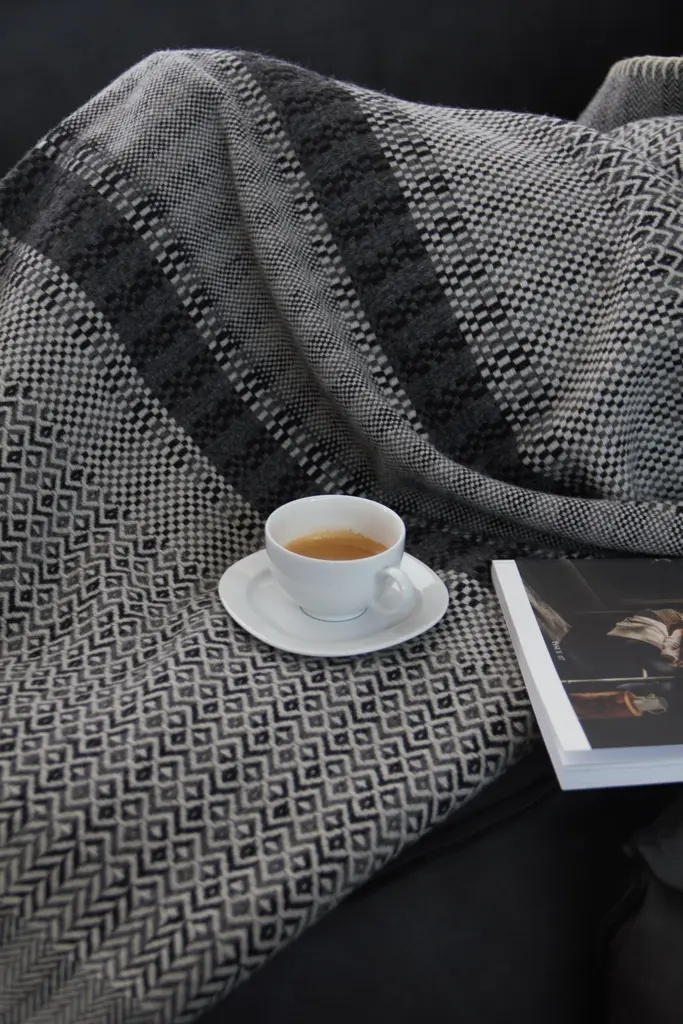 This blanket is inspired by and pays hommage to the heritage of wool manufacturing in Serra da Estrela. It is designed with the intent of retrieving and displaying the array of traditional loom stiches, in juxtaposition. Although very graphical and experimental, the result is brought together under two versions: a neutral greyscale style and a multicoloured palette, resulting in a contemporary object.