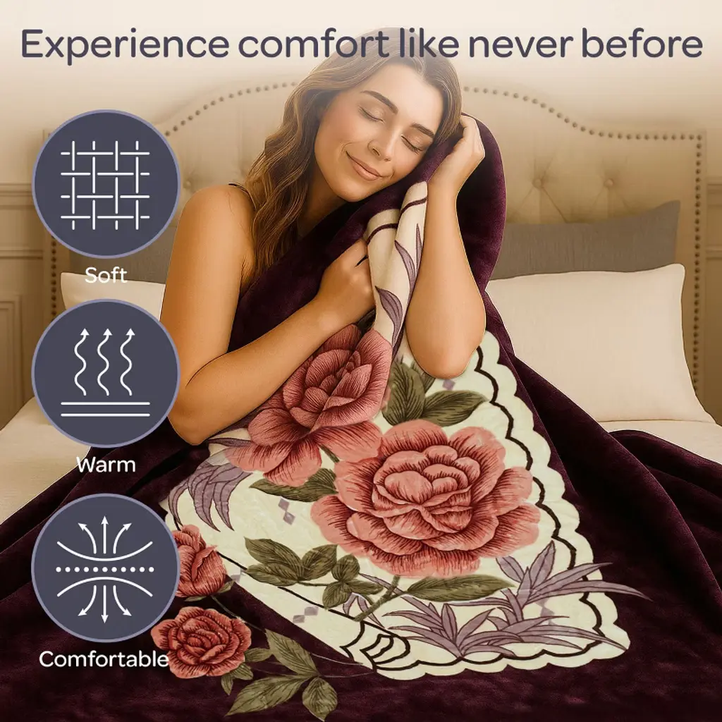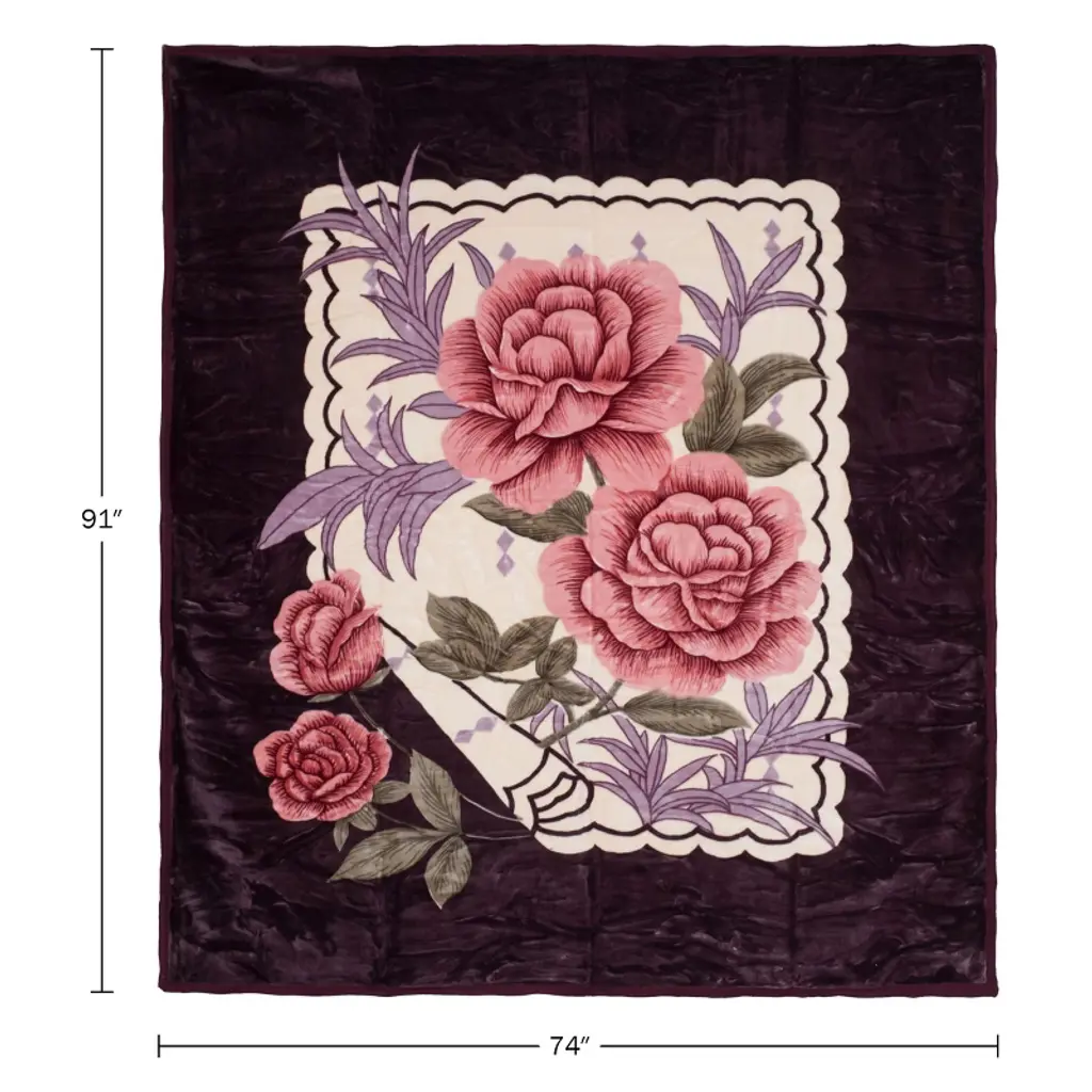 Hastings Home Thick Plush Faux Mink Blanket - Rose Garden