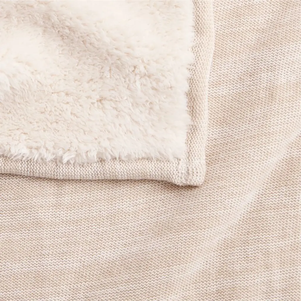 Made for cozy moments at home or on the go, this knit baby blanket features space-dyed yarn for a soft, heathered look on the front and plush sherpa on the back. The marled side is crafted from 100% organic cotton for breathable comfort, while the sherpa reverse adds extra warmth and softness. Great for stroller rides or quiet time on the couch, it can be personalized with baby's name to make it an extra-thoughtful gift.