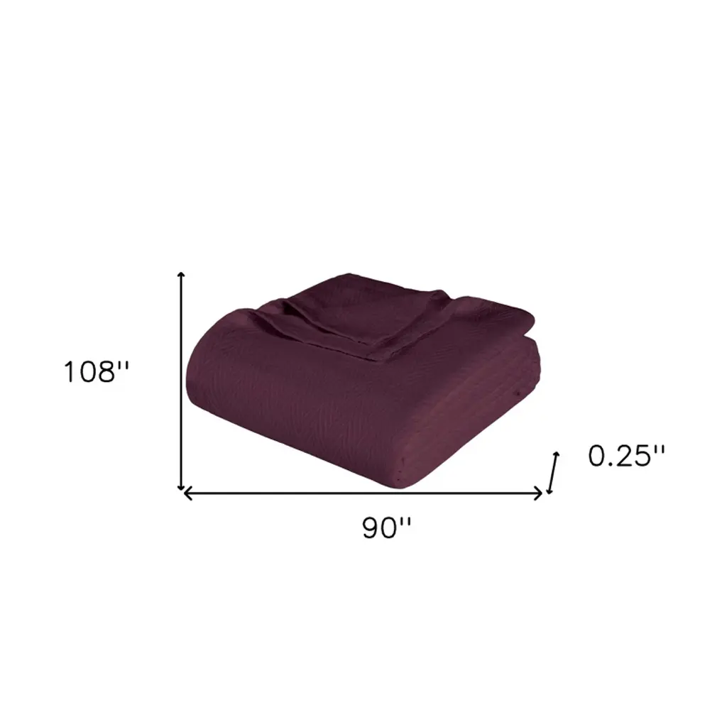 This king plum cotton woven chevron blanket is a cozy and stylish addition to your bed ensemble. Super soft, and featuring timeless style, this cotton blanket offers cozy comfort for a good night's sleep all year long. Enhance your space and the quality of your sleep with this soft and comfortable blanket that helps regulate your core body temperature, helps you to relax, and ultimately fall to sleep. 108-inch h x 90-inch w x 0.25-inch d.