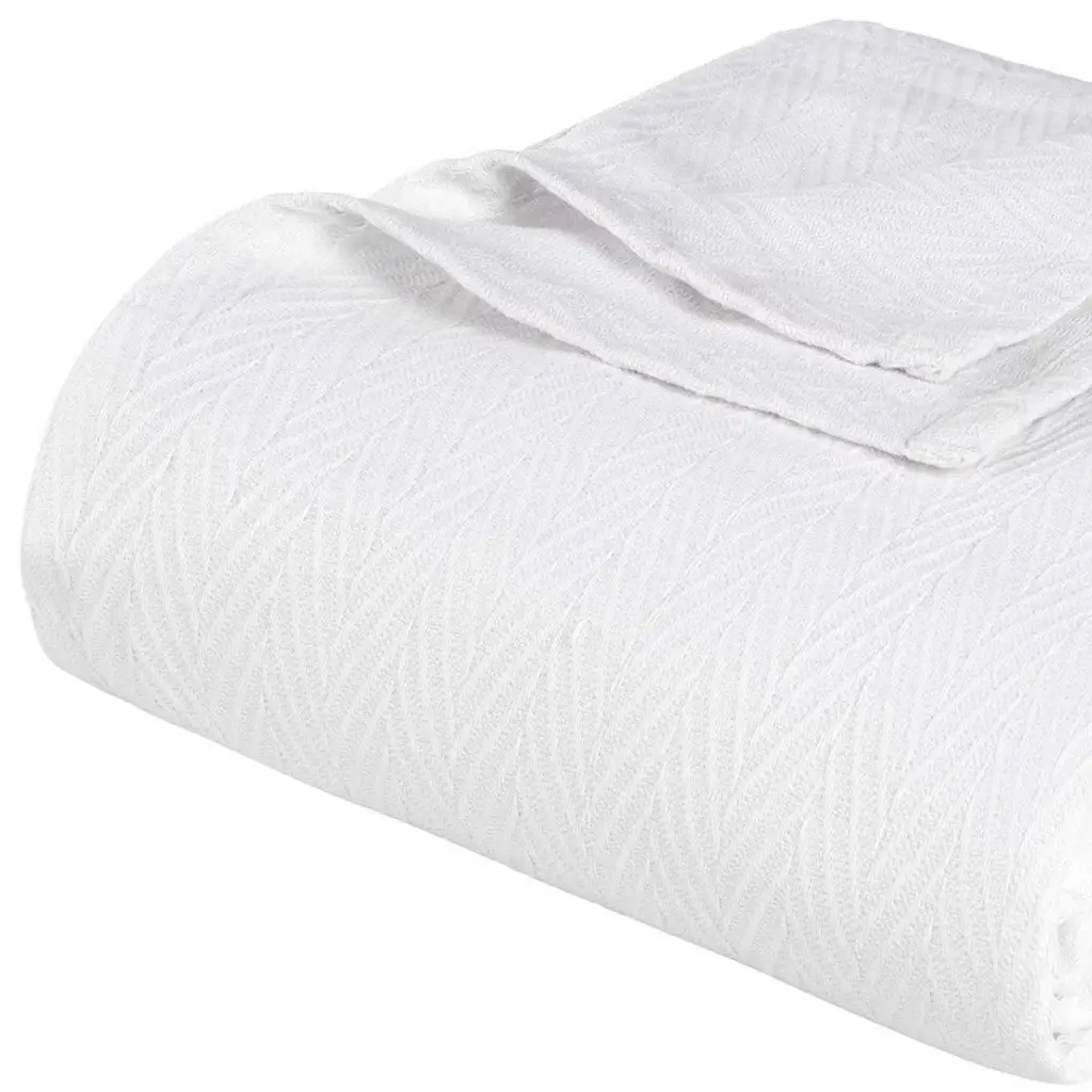 This queen white cotton woven chevron blanket is a cozy and stylish addition to your bed ensemble. A classic and timeless design combines with cozy comfy style so this cotton blanket can deliver you a restful and comfortable sleep all year long. Enhance your space and the quality of your sleep with this soft and comfortable blanket that helps regulate your core body temperature, helps you to relax, and ultimately fall to sleep. 90-inch h x 88-inch w x 0.25-inch d.