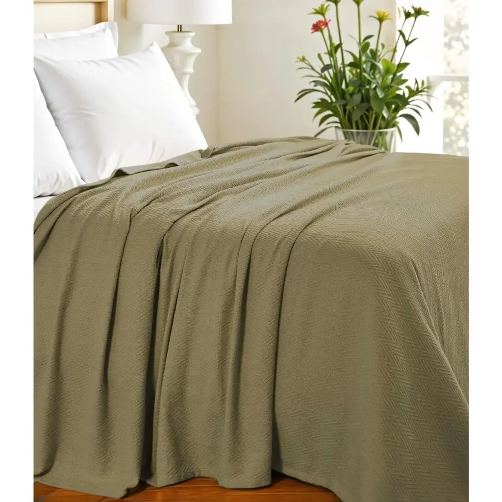 This twin sage cotton woven chevron blanket is a cozy and stylish addition to your bed ensemble, but can also be used on the sofa, in your office cubicle, or anywhere you need a warm and soft blanket. Super soft, and featuring timeless style, this cotton blanket offers cozy comfort for a good night's sleep all year long. Enhance your space and the quality of your sleep with this soft and comfortable blanket that helps regulate your core body temperature, helps you to relax, and ultimately fall to sleep. 90-inch h x 66-inch w x 0.25-inch d.