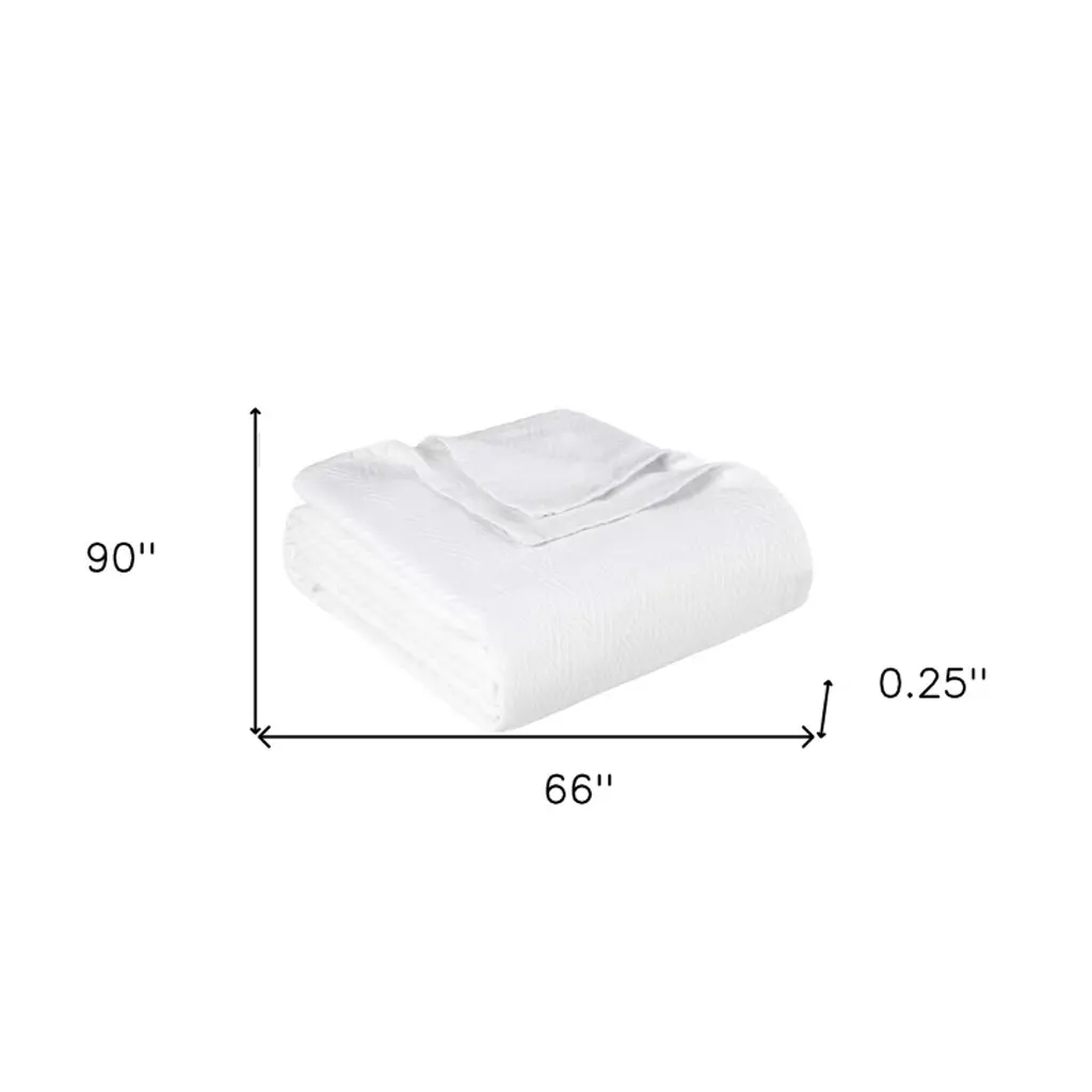 This twin white cotton woven chevron blanket is a cozy and stylish addition to your bed ensemble, but can also be used on the sofa, in your office cubicle, or anywhere you need a warm and soft blanket. A classic and timeless design combines with cozy comfy style so this cotton blanket can deliver you a restful and comfortable sleep all year long. Enhance your space and the quality of your sleep with this soft and comfortable blanket that helps regulate your core body temperature, helps you to relax, and ultimately fall to sleep. 90-inch h x 66-inch w x 0.25-inch d.