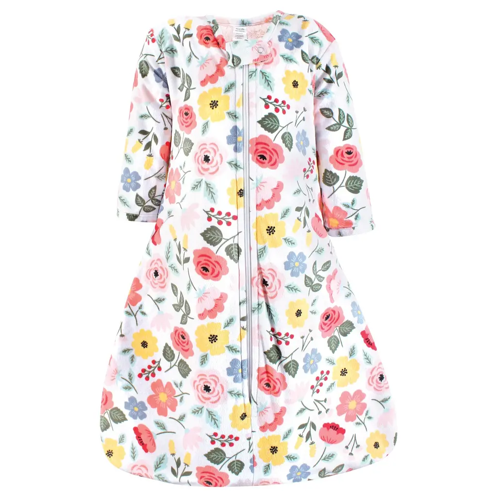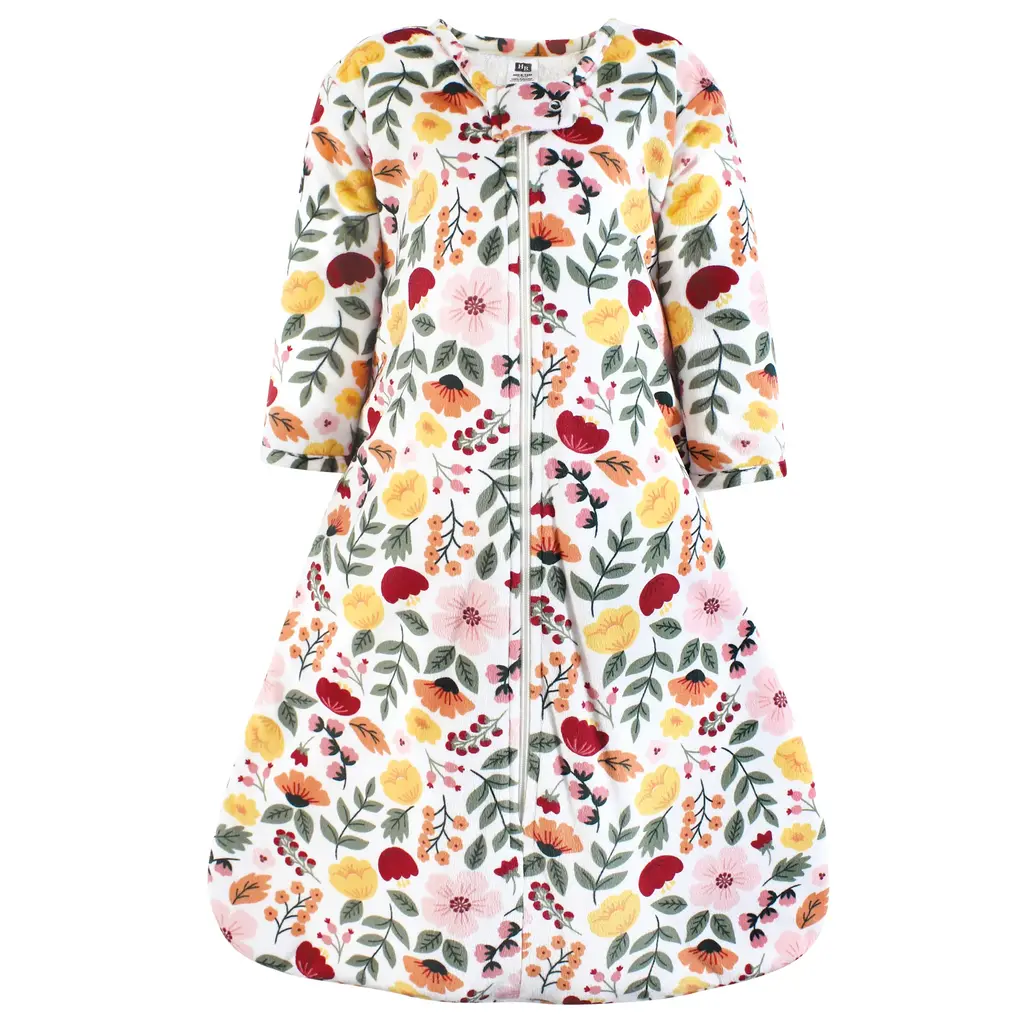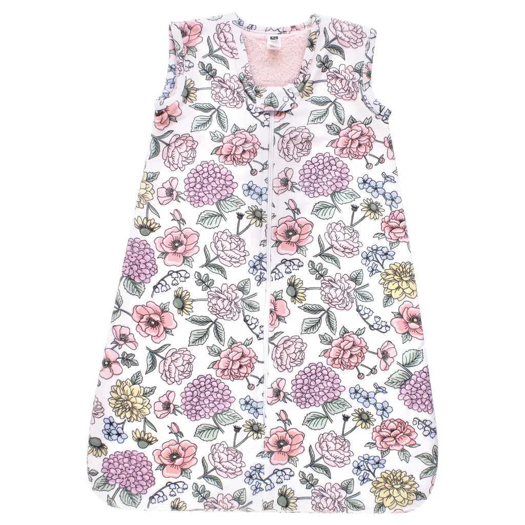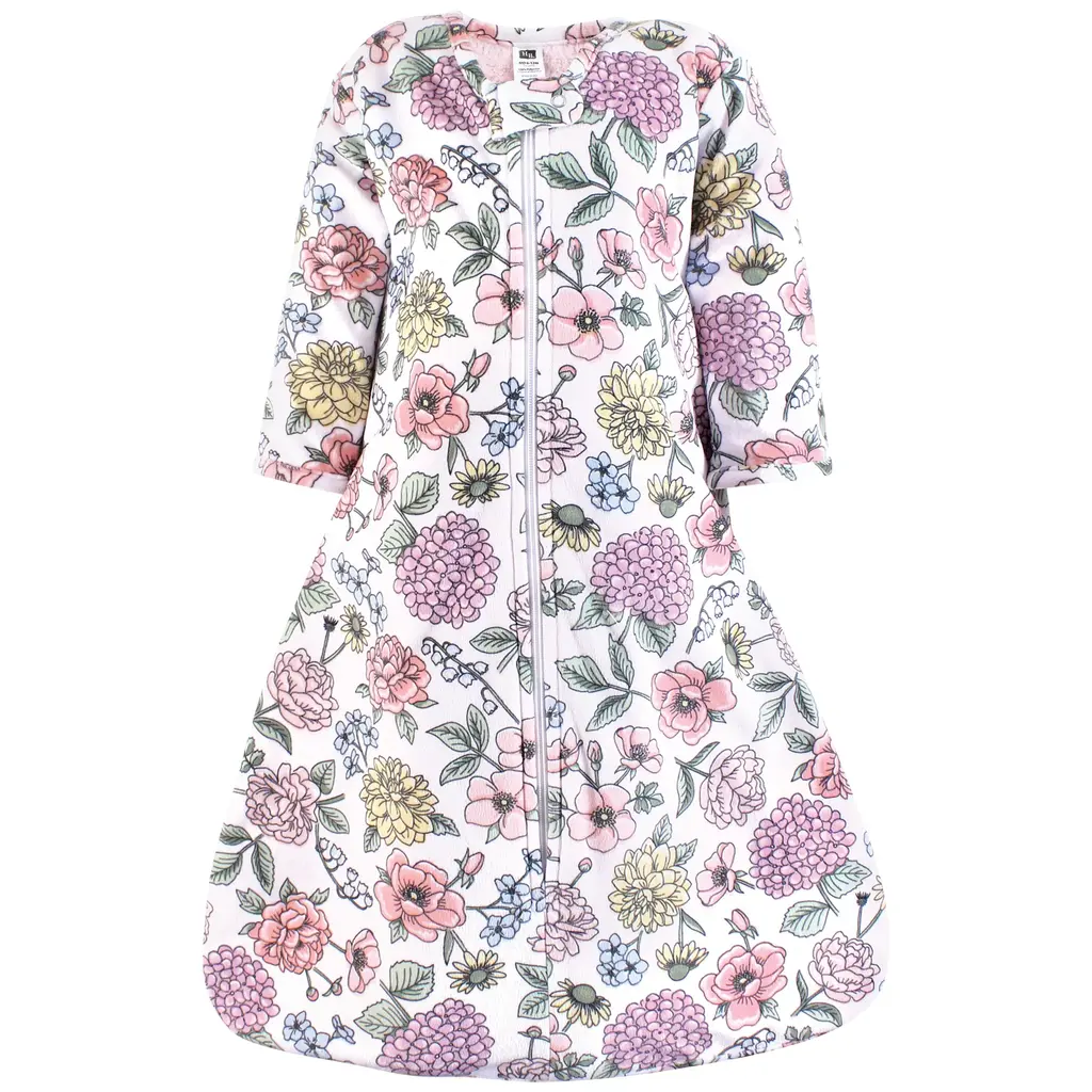 Hudson Baby Girls Long Sleeve Plush Faux Fur Sleeping Bag, Wearable Blanket, Modern Botanical - 18-24 Months - Modern Botanical
