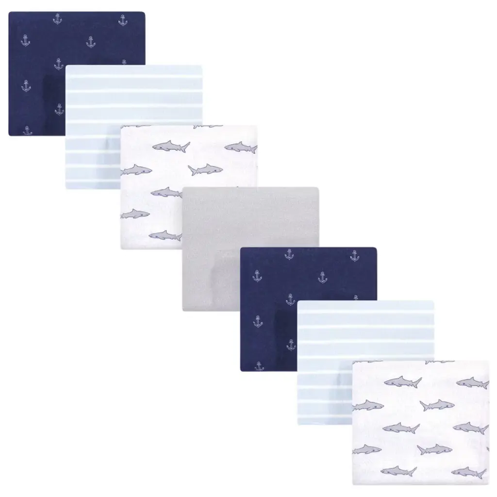 Hudson Baby Infant Boy Cotton Flannel Receiving Blankets Bundle, Shark, One Size