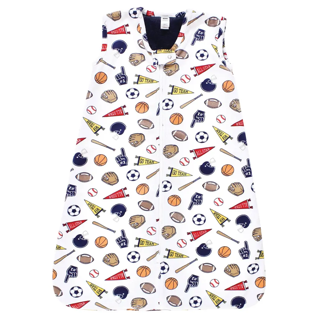 Hudson Baby Infant Boy Cotton Sleeveless Wearable Sleeping Bag, Sack, Blanket, Baseball - 6-12 Months - Baseball