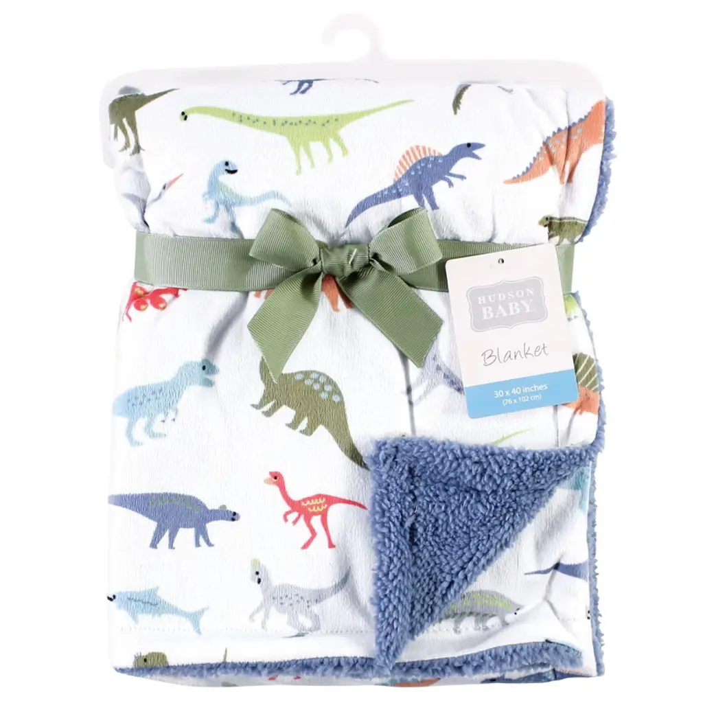 Hudson Baby Infant Boy Plush Blanket With Faux Shearling Back, Dinosaurs, One Size