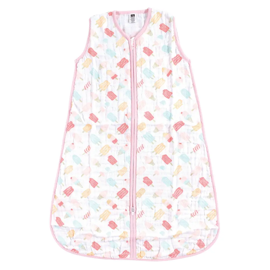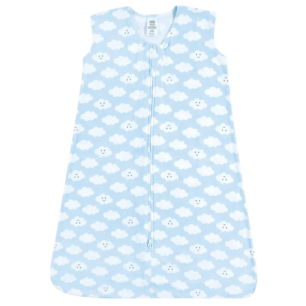 Hudson Baby Infant Girl Muslin Cotton Sleeveless Wearable Sleeping Bag, Sack, Blanket, Clouds And Hearts - 6-12 Months - Clouds And Hearts