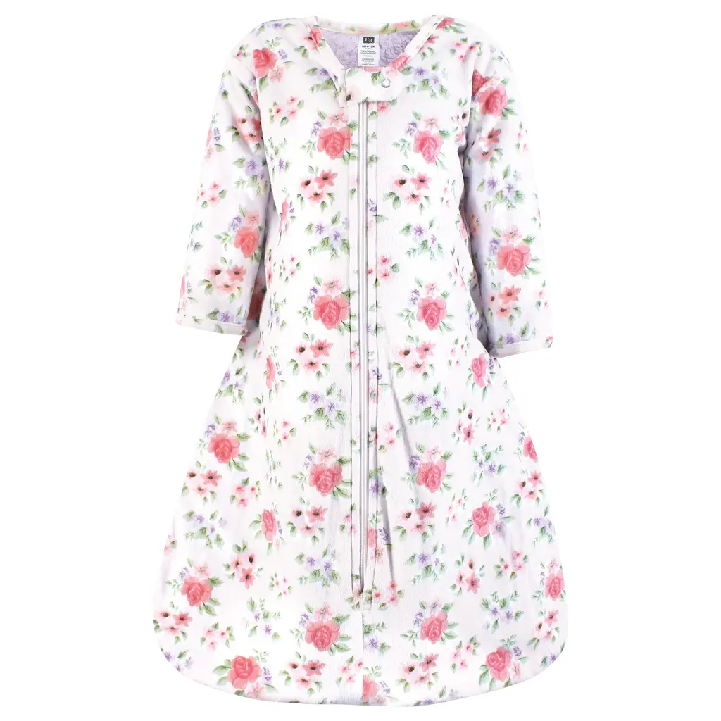 Hudson Baby Infant Girl Plush Faux Fur Sleeping Bag, Wearable Blanket, White Peonies - 18-24 Months - White Peonies