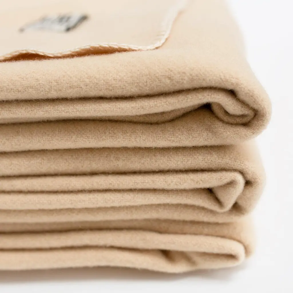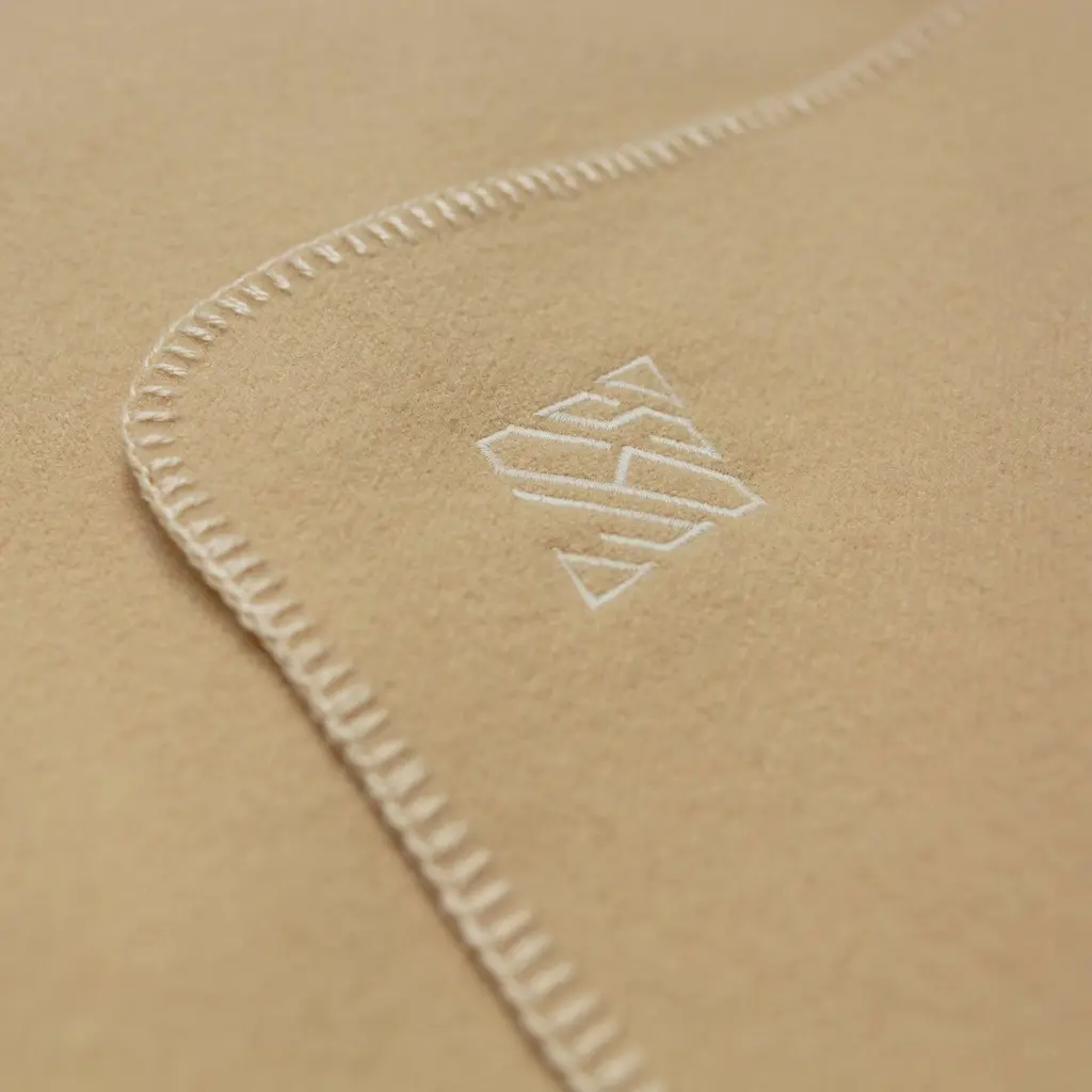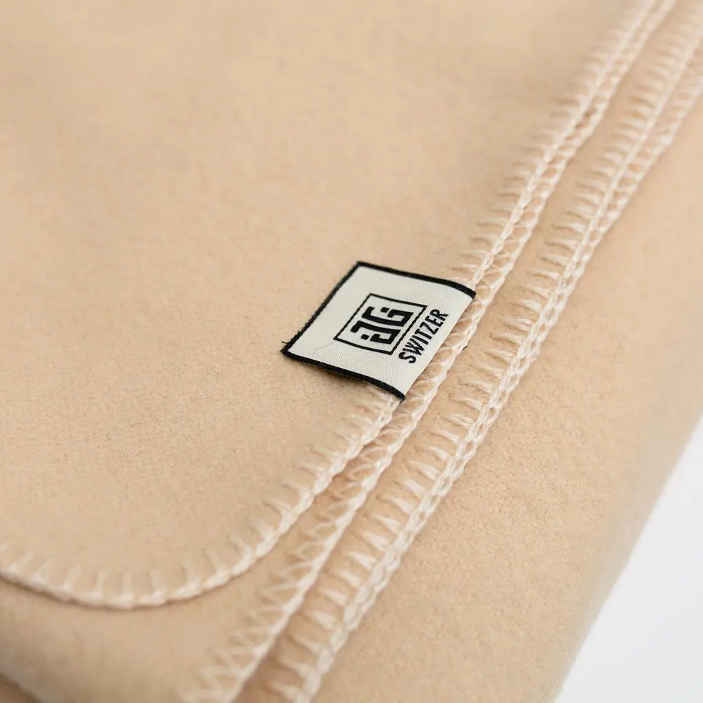 The Classic blanket in Sunshine Yellow is a tailored blanket exclusively made by JG SWITZER in 100% Merino Wool. Blanket stitch is done in house at our workshop in a lovely cream color. Milled in England from soft and high-quality Merino wool in an exclusive straw-color and sewn in California by JG SWITZER. You won't find a finer, more cheerful merino wool blanket. Designed to last many generations, this is an excellent wedding, anniversary or heirloom gift. Fabric: 100% Merino wool 400 GSM - warmth and weight.Stitch: The blanket stitch detail is our cream colored Alpaca and Silk yarn.Dimensions: Queen 90"x100", King 100" x110" will drape most beds with 10-12" drape on either side of the bed. Allow for 1" variance as we "sew as we go" and these are not factory manufactured. These blankets are generously sized to drape or tuck. Made in California.Care: wool cycle and wool dry or delicates/low-Temperature wash and Damp Dry/Delicates. Or dry clean. Complimentary Monogramming Available. Add desired text, font choice, & thread color to Special Instructions box in Cart. Colors and Fonts are limited to certain options and are non-refundable.