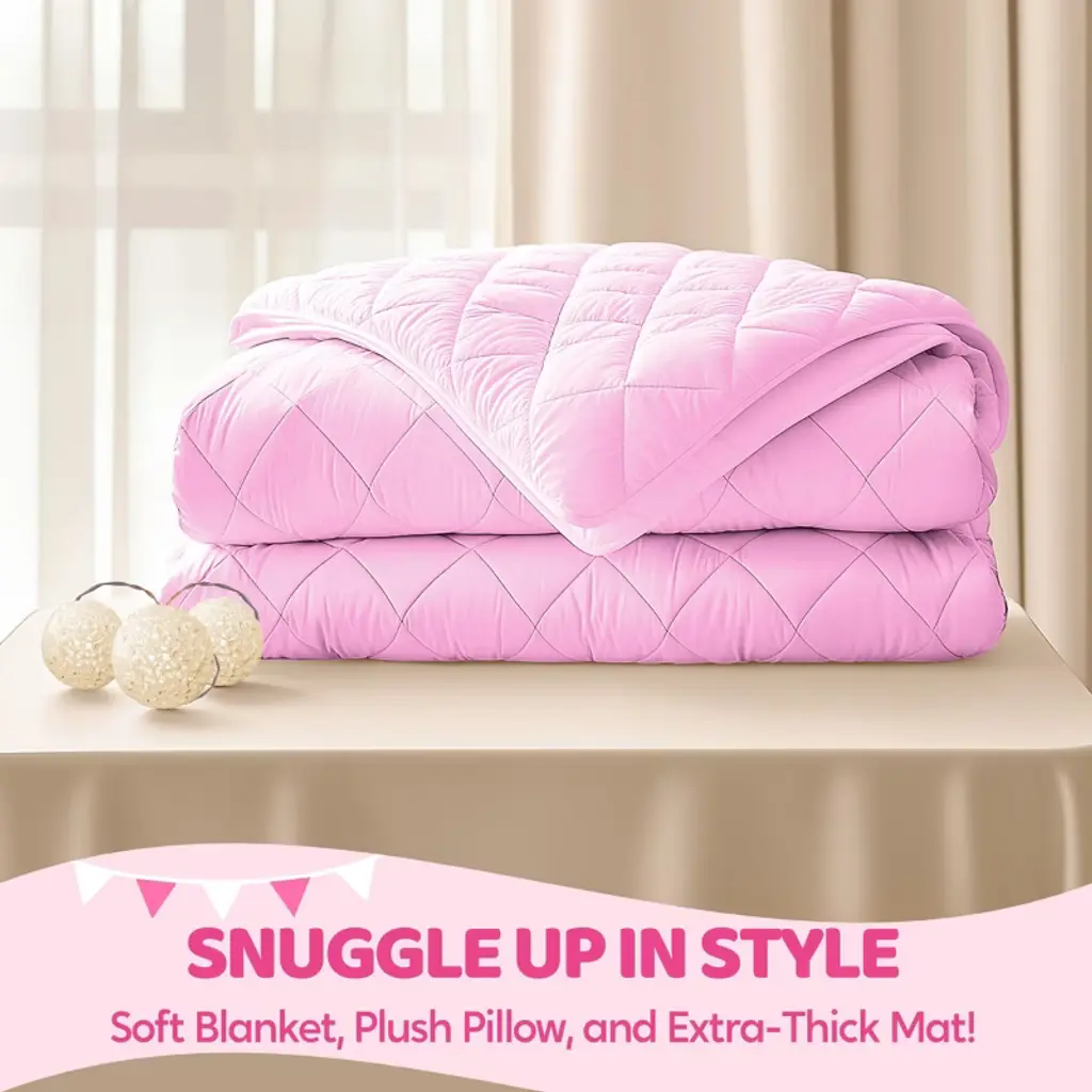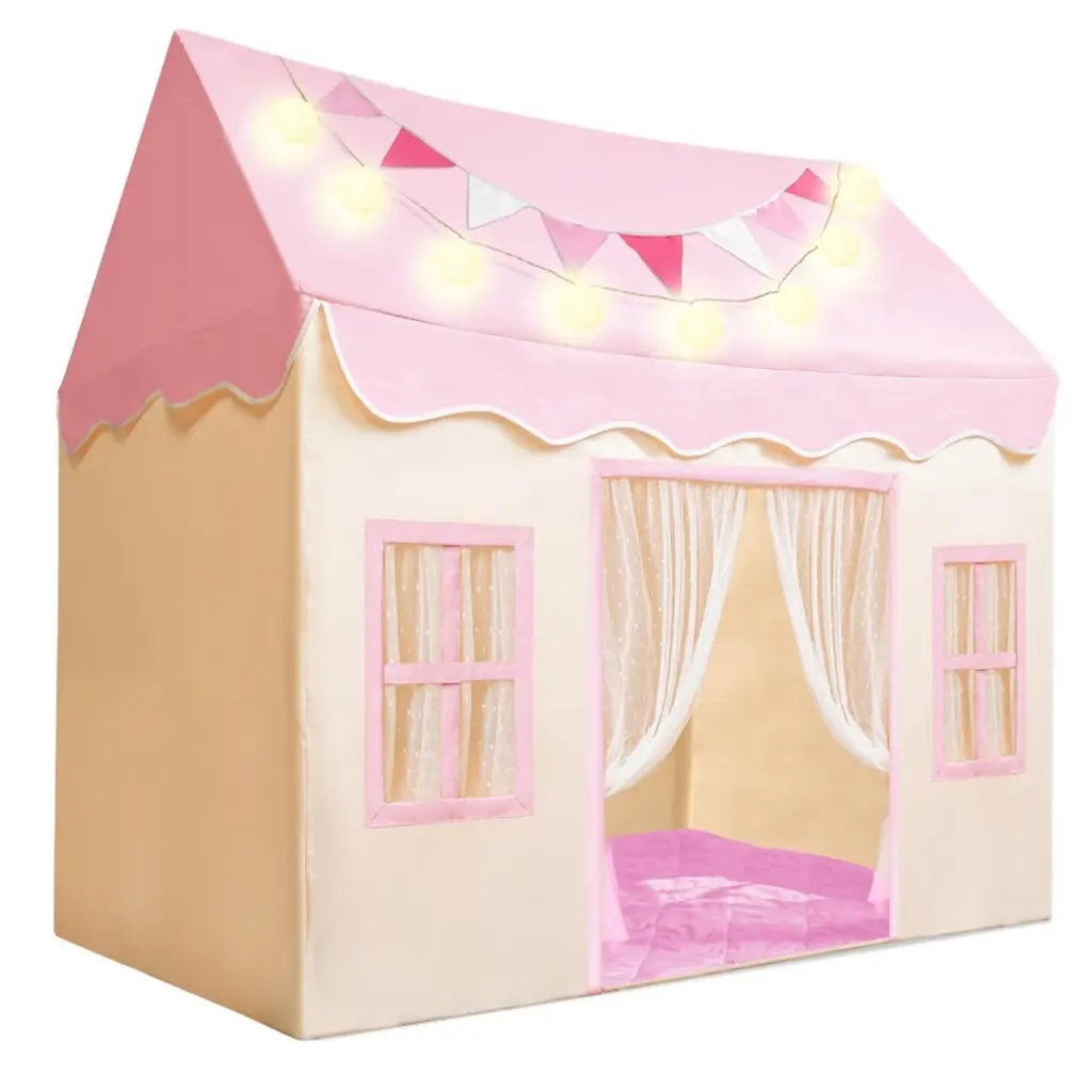 Joyfy Play Tent For Kids - Pink, Indoor & Outdoor Playhouse With Blanket, Led Lights & Flags For Toddlers, Ideal Space For Boys & Girls Ages 3-7