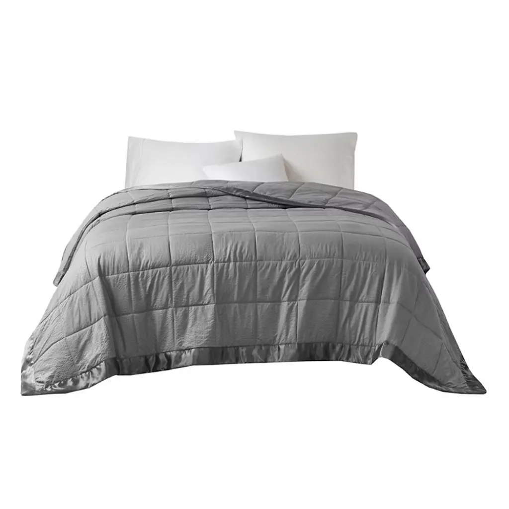 Enjoy cozy comfort every night with this oversized down alternative blanket, crafted from embossed microfiber and finished with a luxurious 3" satin trim. Designed with classic box quilting, it adds a timeless touch to any bedroom while maintaining warmth and softness. The advanced 3M Scotchgard treatment wicks away moisture and helps release stains, keeping the blanket fresh and clean with less effort. Filled with hypoallergenic down alternative fiber, it’s perfect for those with sensitivities. OEKO-TEX certified, this blanket is free from harmful substances, offering peace of mind along with comfort. Machine washable and easy to maintain, it arrives compressed for efficient shipping—just fluff and enjoy.