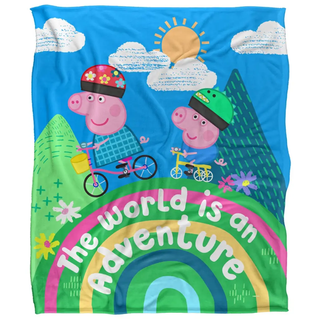 Kids' Peppa Pig World Is An Adventure Peppa And George Silky Touch Blanket White 36x58