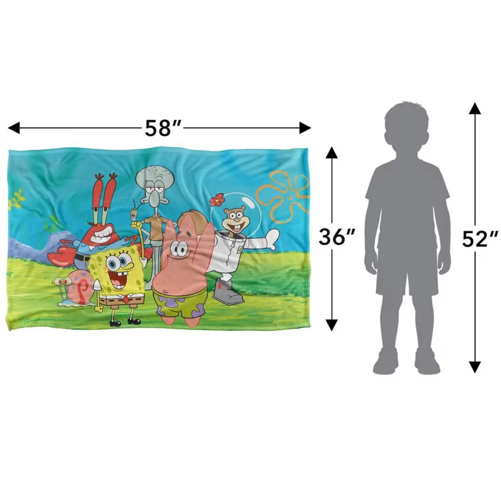 Kids' Spongebob Spongebob Group Scene Silky Touch Blanket White 36x58