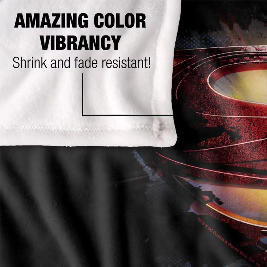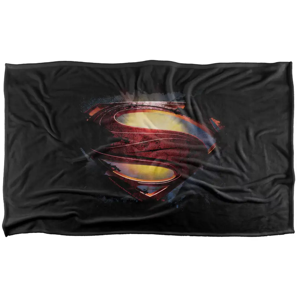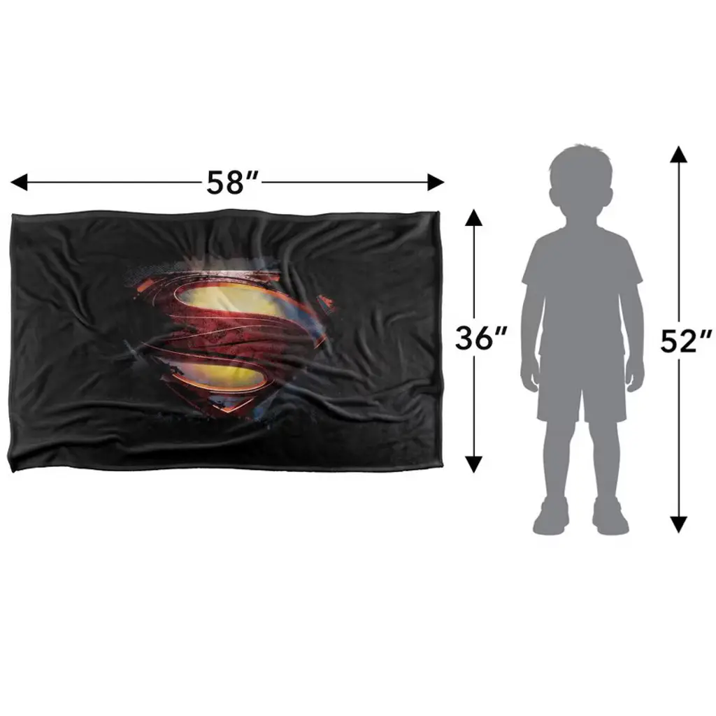 Kids' Superman Man Of Steel Grungy Shield Silky Touch Blanket White 36x58