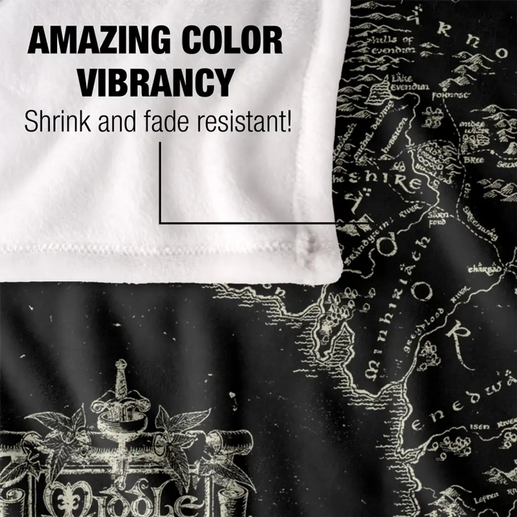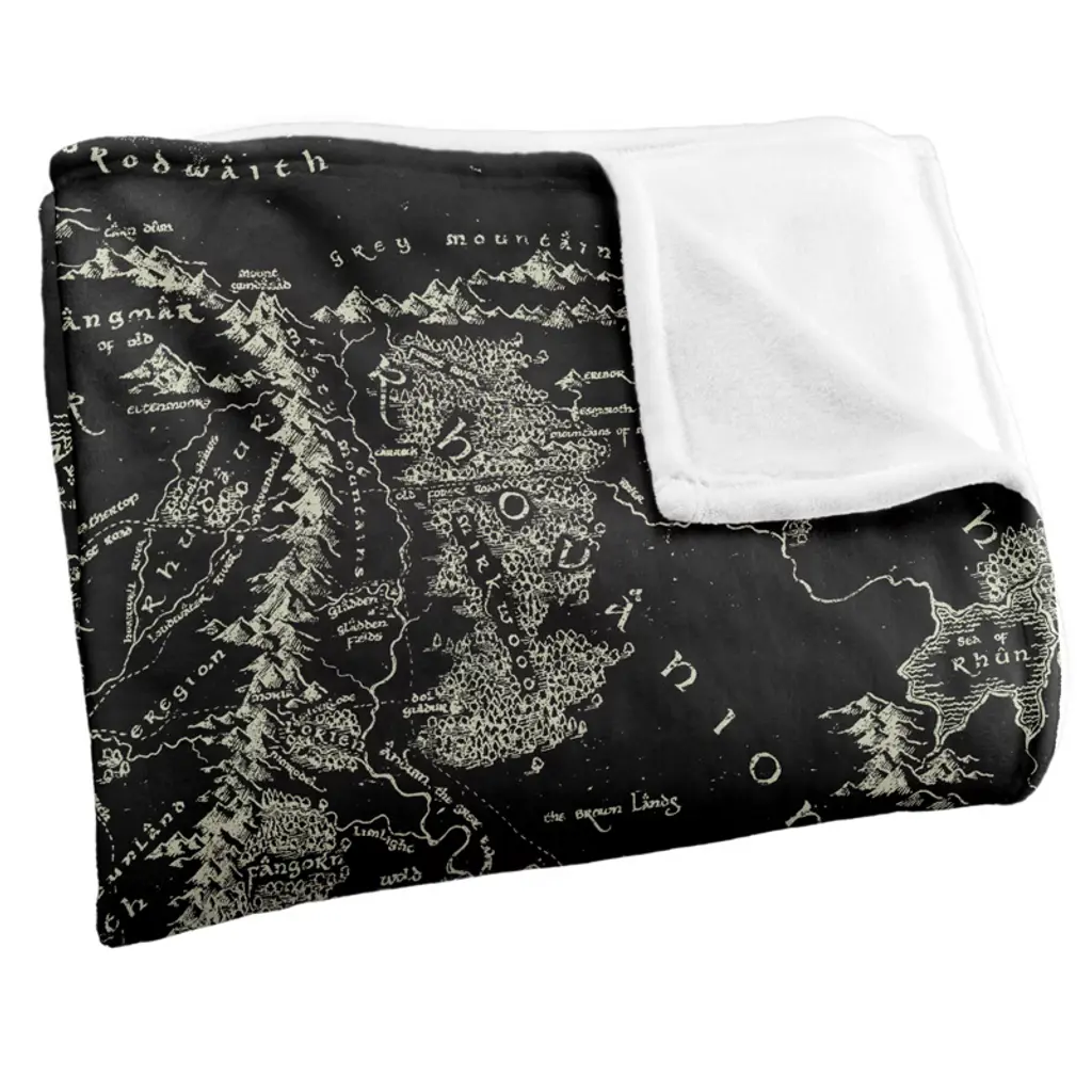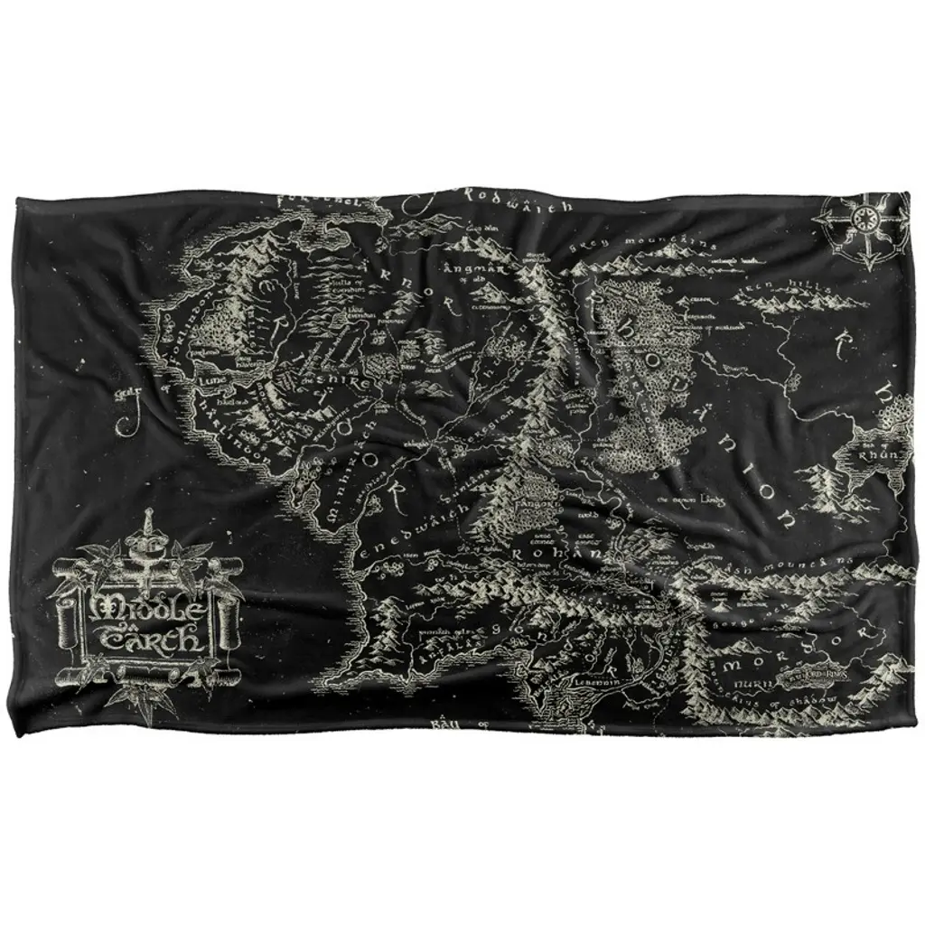 Kids' The Lord Of The Rings Black Map Of Middle Earth Silky Touch Blanket White 36x58