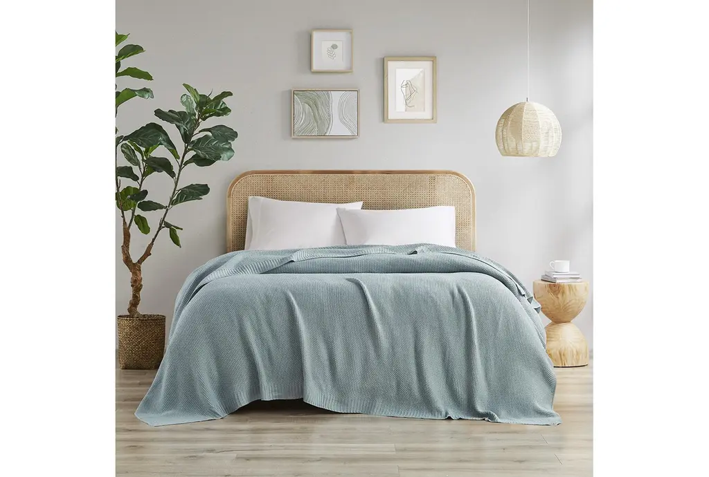 Experience the perfect combination of comfort and style with the King Light Blue Bree Knit Blanket. This casual blanket adds a touch of softness and warmth to your bed, creating a cozy and inviting atmosphere. The light blue color brings a subtle, calming effect to any room.