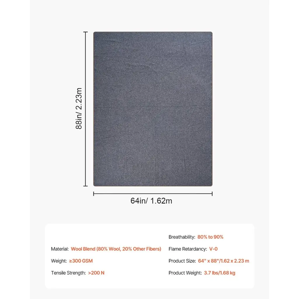 Light Grey Wool Blend Camping Blanket, Flame Retardant And Breathable - 88” L X 64" H - Light Grey