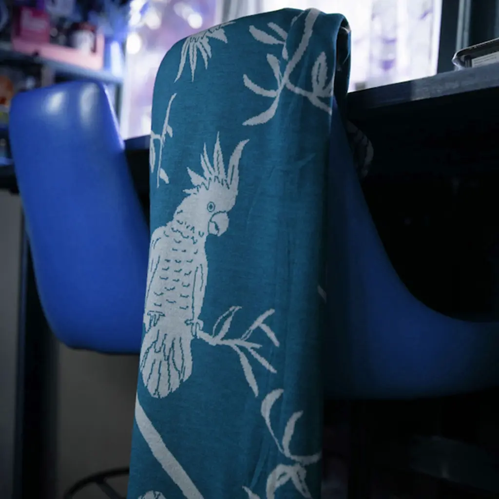 Chirping in the morning, reminding us that the sun is up... Hello Cocky! Good morning sunshine! Bring the native Australian wildlife into your home with this knitted wool blanket. Throw it on the sofa or lay it on your bed, bundle up and keep cosy.Made in Melbourne from 100% Australian Extra Fine Merino.All of our blankets are knitted to order, please choose carefully to avoid wasting yarn.