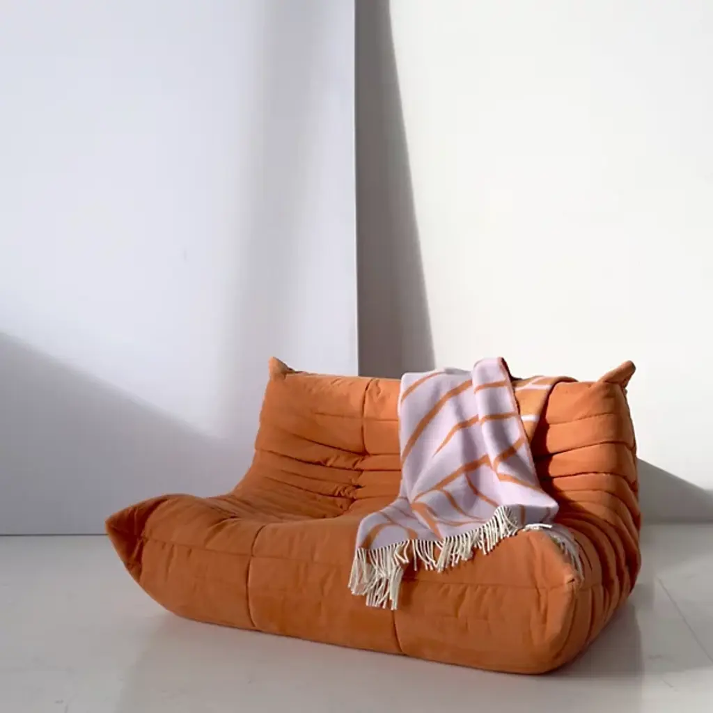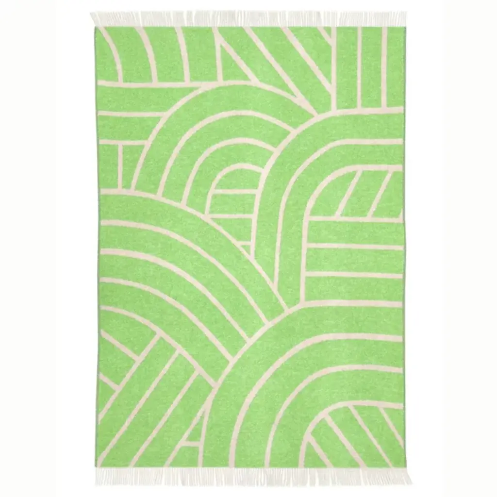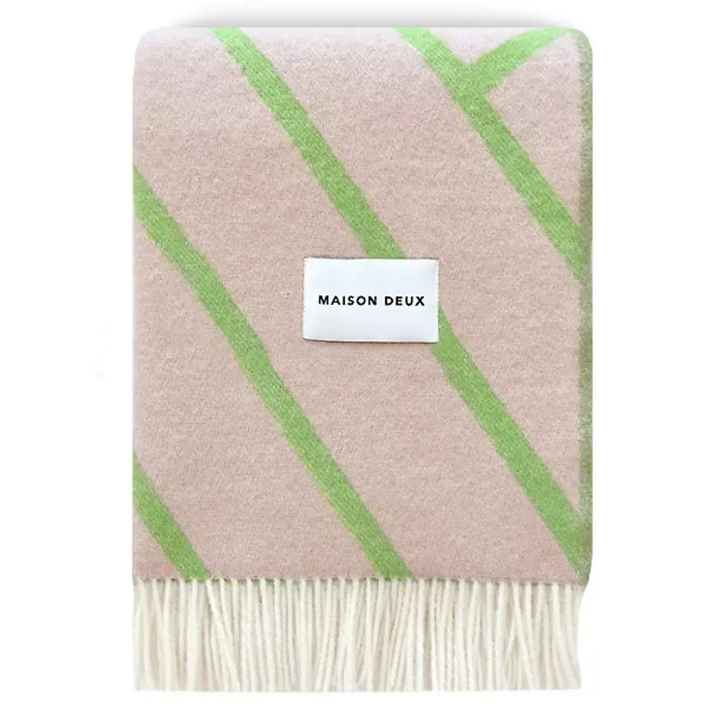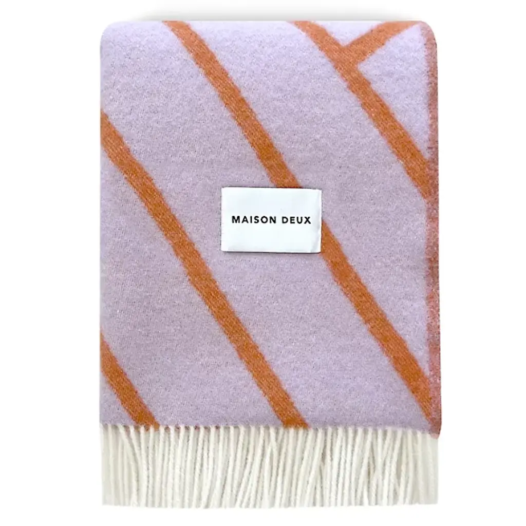 The Lines Blanket from Maison Deux introduces an artistic flair and inviting warmth to any space. Jacquard-woven from 100% New Zealand wool, this soft yet substantial blanket features soft fringed edges on the short sides and a reversible mirrored design adorned with flowing, intertwined lines that create a dynamic visual texture. Made in Lithuania, it’s a refined addition to artisanal modern interiors. Generously sized for sharing or enveloping yourself in comfort, it’s Woolmark and OEKO-TEX certified, highlighting its natural, sustainable, and eco-friendly composition.