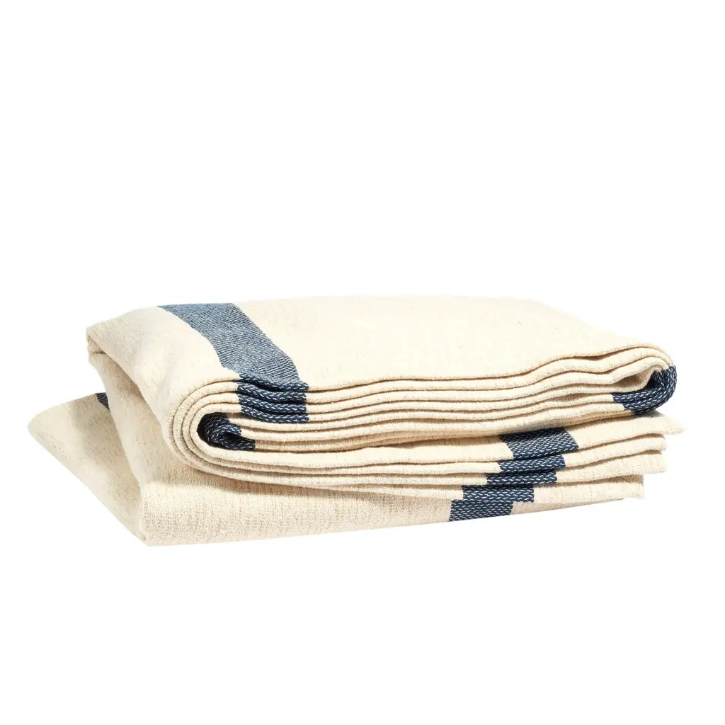 With its wide ivory and navy stripes, this cozy cotton blanket is a statement piece for your bed. From coastal to farmhouse, modern to traditional, the classic design adds a stylish touch to any space.