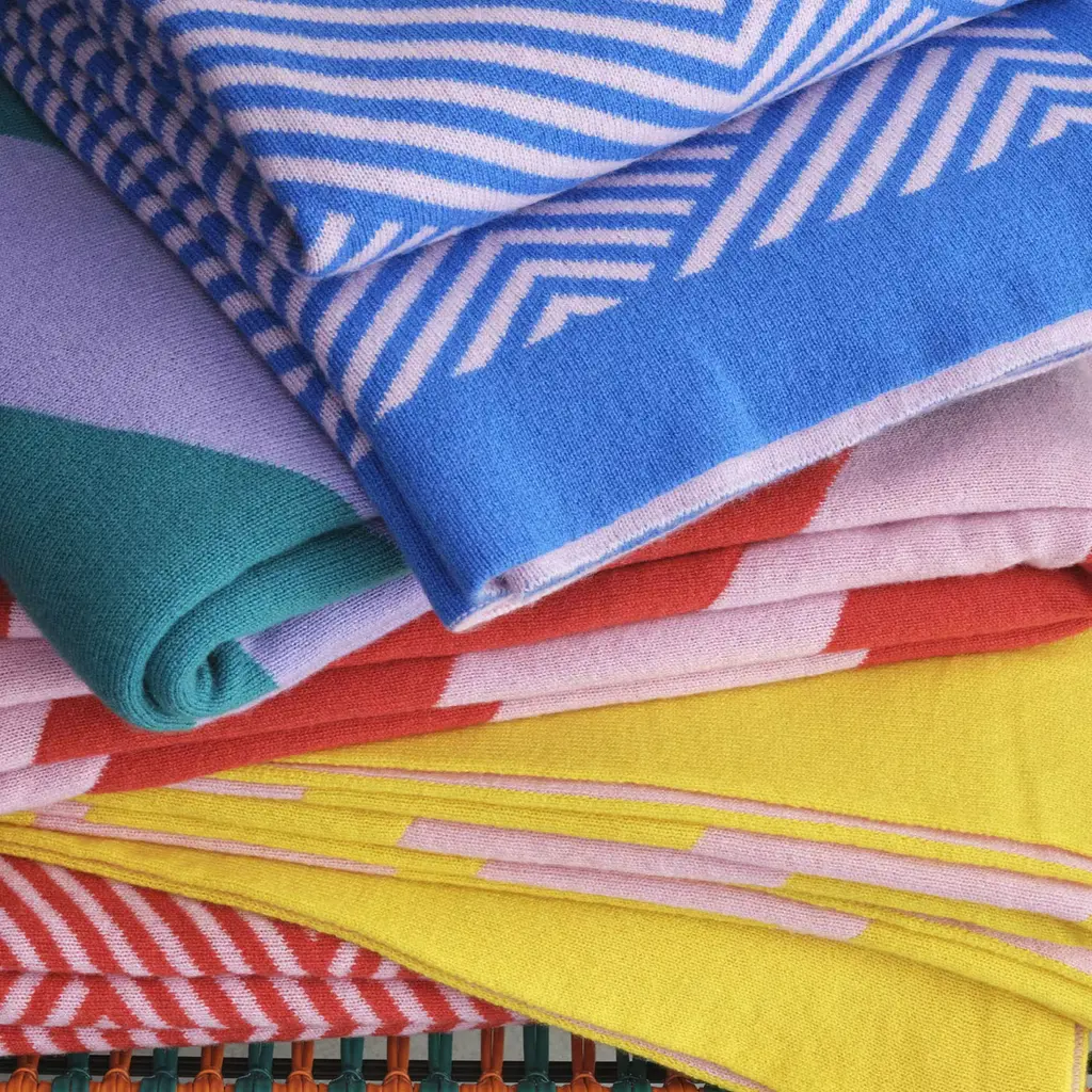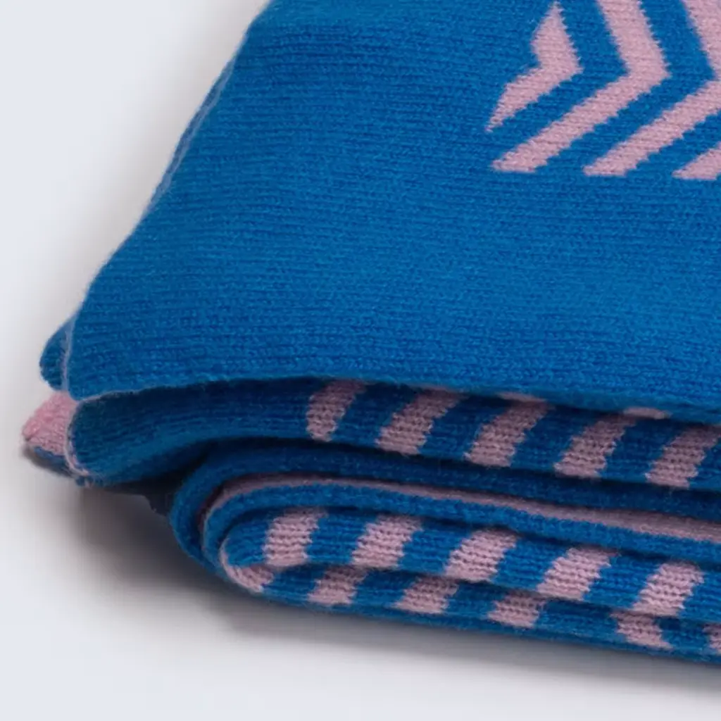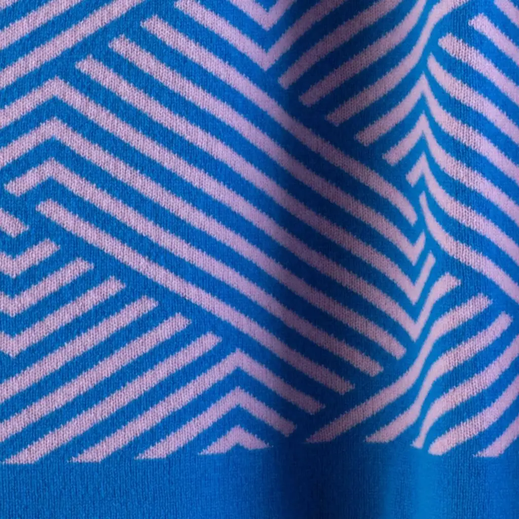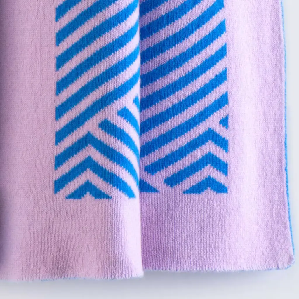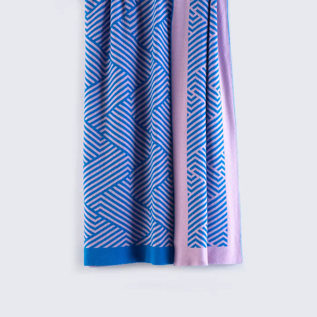 Elegant and comfortable, this blanket will enliven a modern-style sofa with its this two-color profile, displaying vivid blue and pink geometries of captivating visual allure. Handcrafted of 100% cashmere, it is a refined testament to traditional craftsmanship. Please consult the Concierge for further information and customization options.