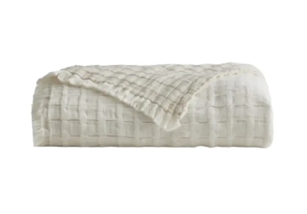 Inspired by vintage Indian woodblock motifs, recreated with a jacquard-woven matelassé. The Mirada is a luxurious and versatile bed blanket, featuring our iconic chrysanthemum print on one side and a solid color on the reverse. Crafted from 100% GOTS certified organic cotton inside and out, it’s filled with yarn—not batting—for natural breathability and garment washed for a lived-in look and feel.