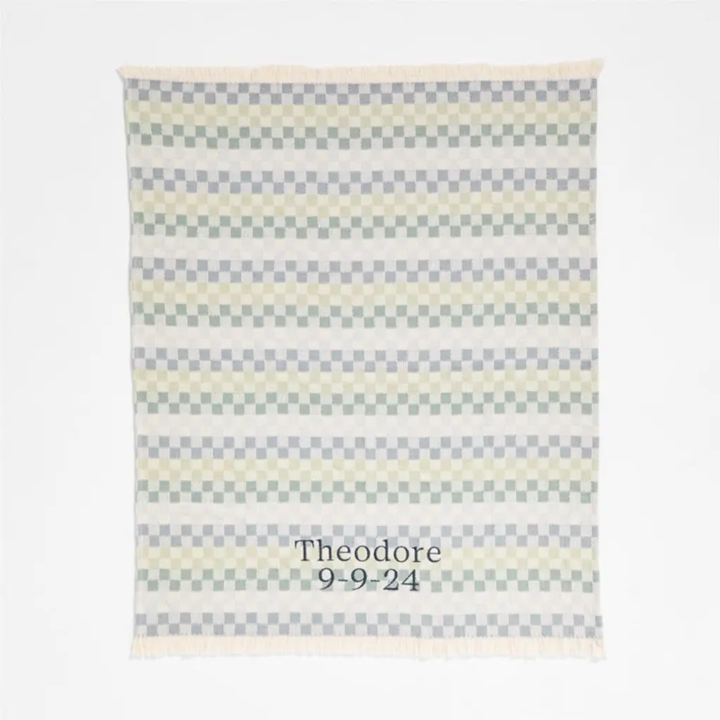 Chilly day? Grab this stroller blanket, and you and baby are ready to roll. Made of organic cotton jacquard, it has a warm, soft feel that makes a stroller extra cozy. The cool blue-and-green checkerboard pattern makes it a trend-forward addition to a nursery too. Personalize it with your baby's name or initials (because it's sure to become their favorite blanket).