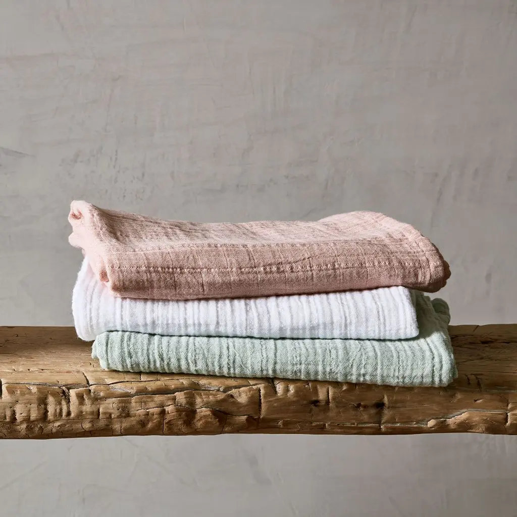 Fresh, happy hues. In a set of three, these OEKO TEX® certfied muslin blankets are must-haves for a cozy layer at home and away. Garment-washed for supreme softness.