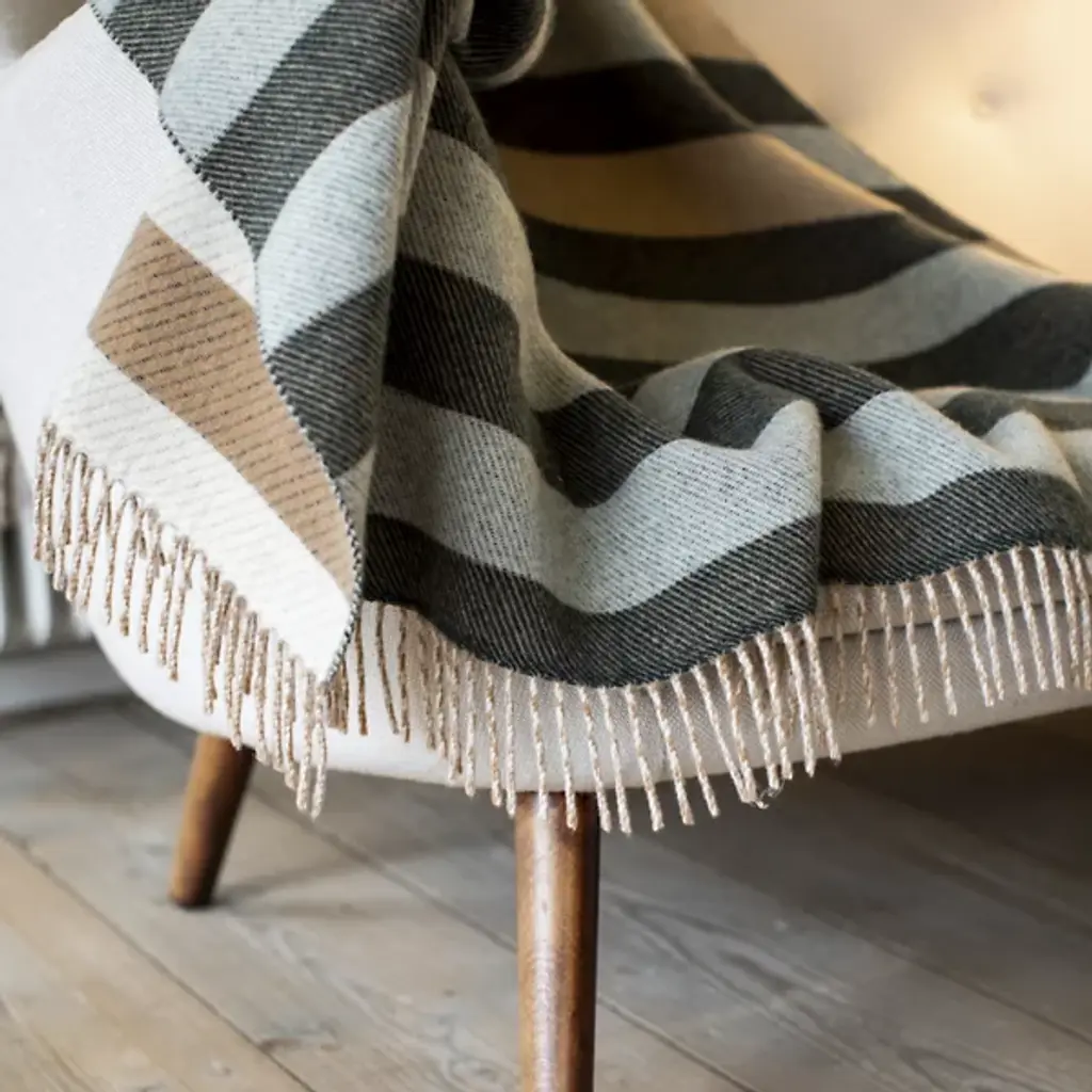 The Patch Blanket from Raawii brings artistic character and soft comfort to any interior. Designed by Dana Arbib, it’s crafted from a soft intersection of wool and cashmere fibers with a delicate fringe detail that enhances each short edge. Angular shapes and contrasting tones create an artistic composition across the surface, creating something lightweight yet warm, creating a thoughtful layer of texture, color, and warmth wherever it lands.
