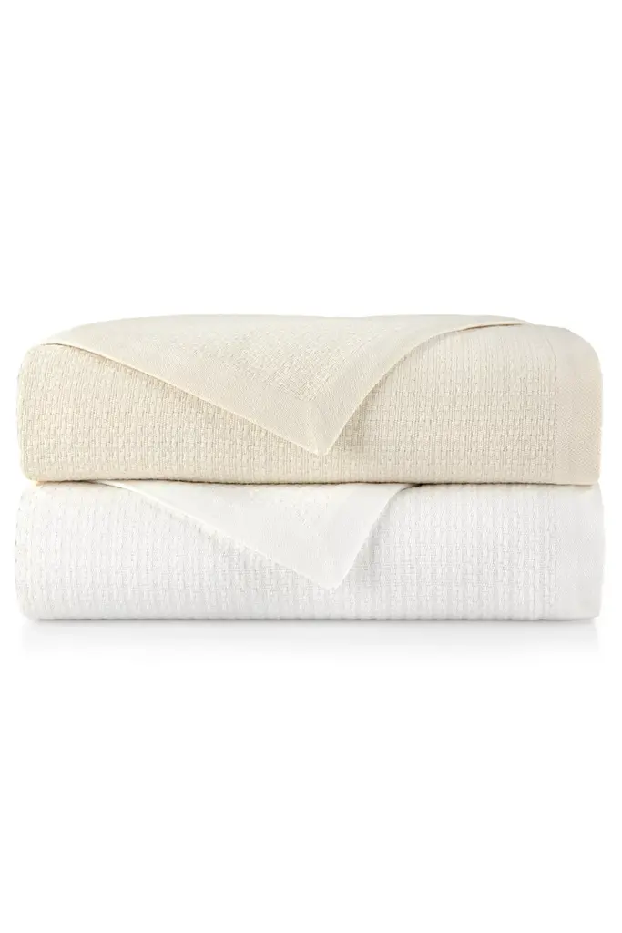 The all-new Newport is a 100% cotton textural woven blanket with a solid border for a tailored look.This lightweight blanket is great for warm climates or for those who sleep warm year round regardless of climate.Mary Ella Gabler founded Peacock Alley 45 years ago with a passion for creating beautiful textiles. She has built one of the first woman-owned, woman-operated multi-million dollar bedding brands in America. Peacock Alley is known for bedding and bath linens that are crafted with pride and precision to stand up to real life, and get even better with time. * 100% Cotton* Machine wash cold; tumble dry low * Imported#### * Dimensions * * Twin: 75" x 96" * Queen: 96" x 96" * King : 114" x 96"Looking for the sweetest of dreams? Read our guide to find the perfect bedding for you, and learn how to care for it season after season.
