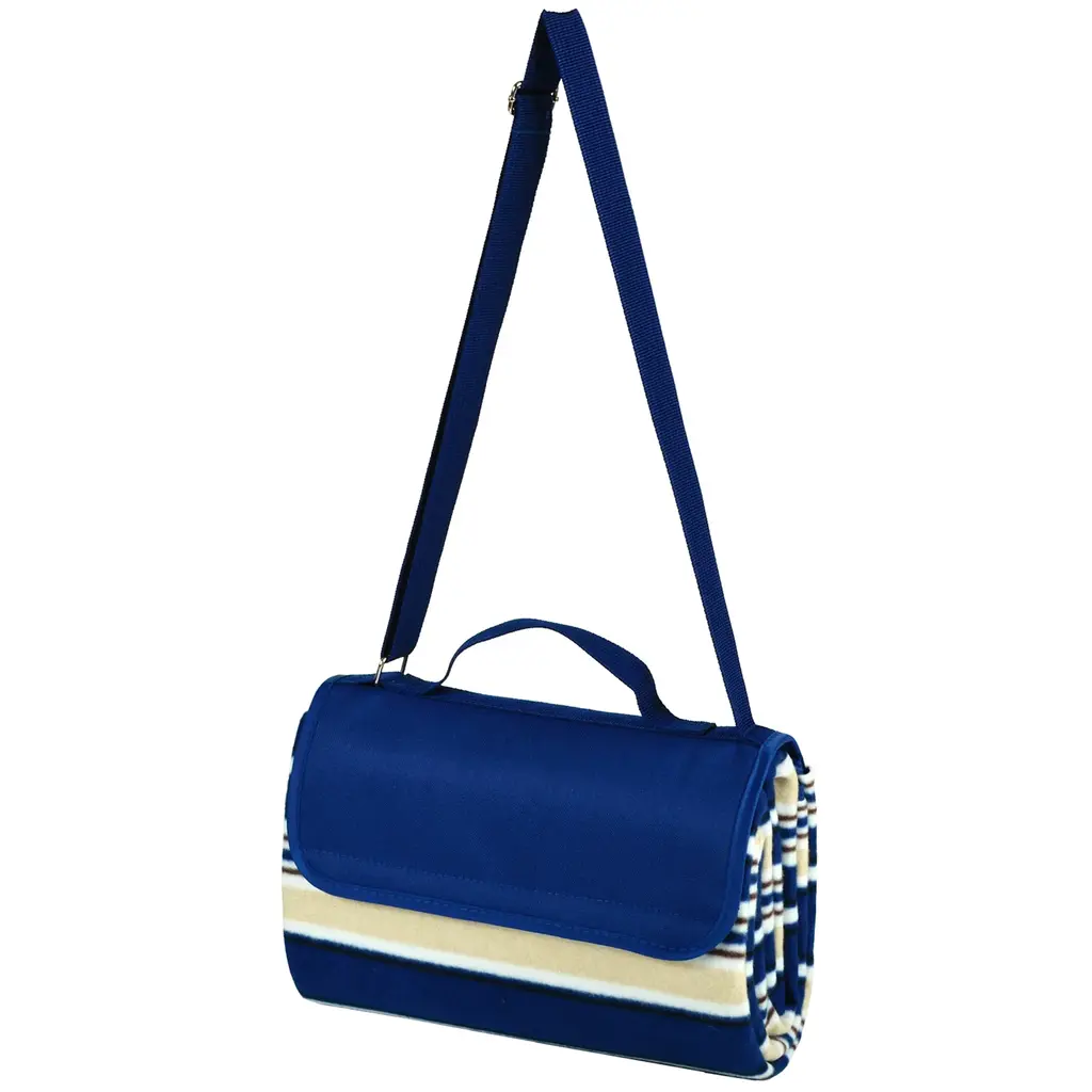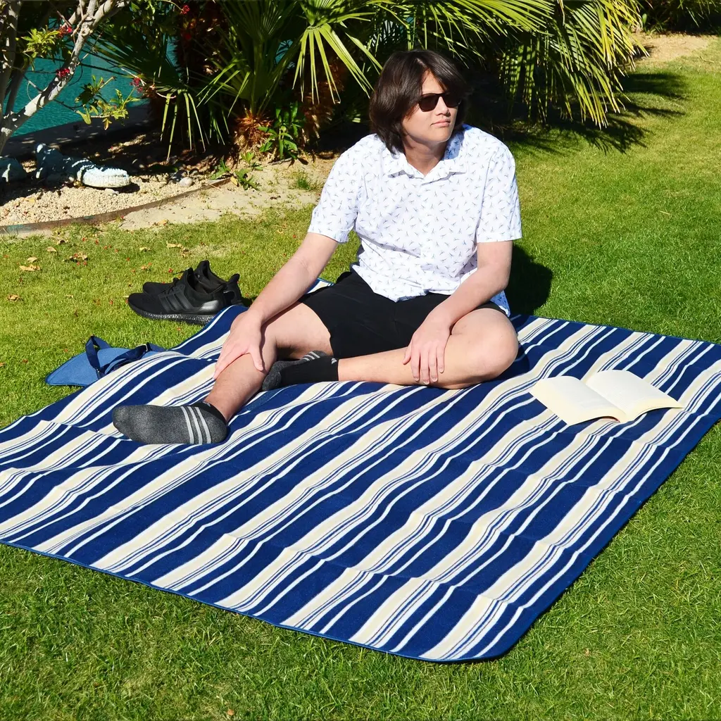 Picnic At Ascot Extra Large Picnic Blanket 80" X 60" - Blue Stripe