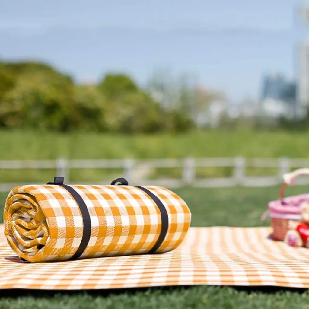 Extra Large 60" x 80" Family Outdoor picnic blanket with carry handle and adjustable shoulder strap. Self-case with easy hook and loop closure Polyester fleece with water resistant backing. Wedding Gifts, Showers, Housewarmings, Graduations, Birthdays, Clients