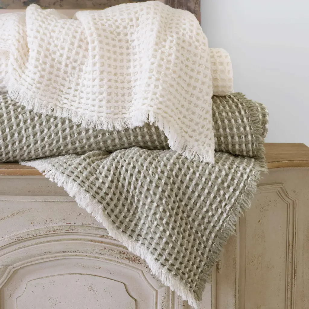 Warm and inviting, this extra layer for your bed is lofty, frothy, and woven in Portugal to look and feel like the softest of sweaters. In a buttery blend of cotton and soft wool, this whisper-weight waffle stitch blanket is made extra comfy and cozy with parallel ridges of tucked ribs for a feast of lightweight texture and insulating comfort. Designed for us by Marie Flanigan, an award-winning interior designer and principal of Marie Flanigan Interiors, to reflect her signature style of timeless elegance and innovative simplicity. Care Instructions: Machine wash cold. Tumble dry low. Do not bleach. Warm iron if needed. Do not dry clean. Please Note: This listing is for the blanket only.