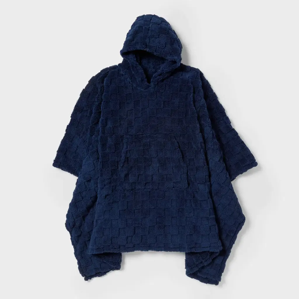 Experience cozy comfort while watching TV or reading in bed in this Plush Wearable Blanket from Room Essentials™. The embossed checkered wearable blanket is made of super soft and plush faux shearling fabric with backing to keep you warm and cozy from head to toe in the cold weather. This hooded wearable blanket is machine-washable for easy home care and is designed with a front kangaroo pocket to keep your phone or remote control close at hand. Room Essentials™: Everyday Value