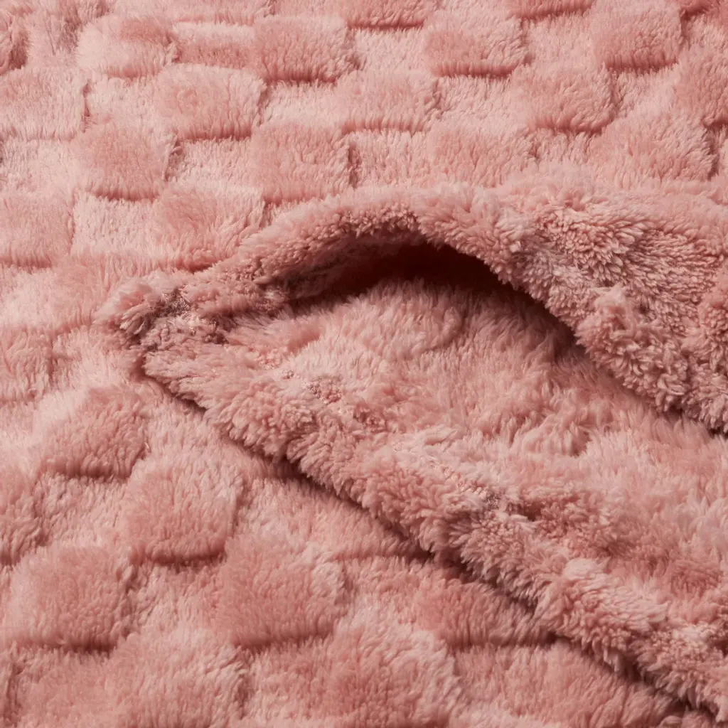 You'll love wrapping yourself in the soft comfort of the Plush Wearable Blanket from Room Essentials™. This pink wearable blanket features a checkered-like embossed design for an appealing look. It has a hood for full coverage and a front kangaroo pocket to help keep small items handy. This midweight wearable blanket is made of faux shearling and feels soft and cozy during the chill.Room Essentials™: Everyday Value
