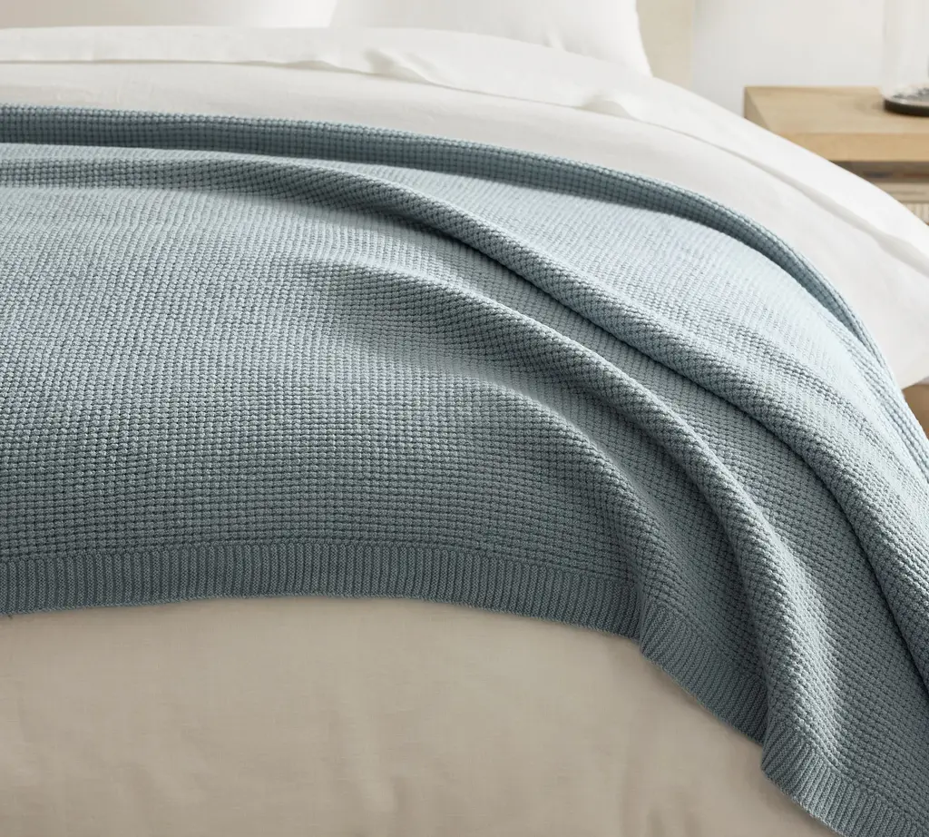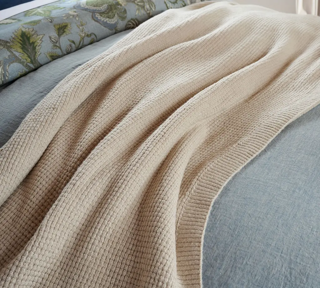 Warmth without the weight makes this waffle knit blanket the perfect year-round layer. Made from incredibly soft yarns, the breathable, textured pattern creates little pockets of air to help regulate body temperature.