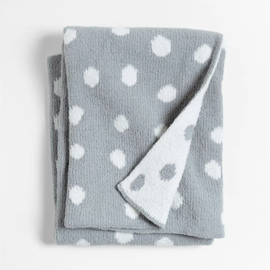 For cozy-comfort beyond the crib, our chenille stroller blanket is a lofty layer that babies will love. In a white and pink design, irregular circles float across the background in true whimsical fashion. The fuzzy chenille (which is French for caterpillar!) yarn is outrageously soft to the touch and keeps littles ones at a comfortable temp wherever the road takes them. The back features the same design in reversed-out hues.