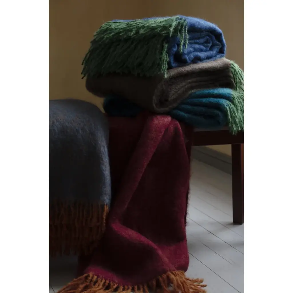 Revontuli Mohair Blanket, Rust - Denim Blue
