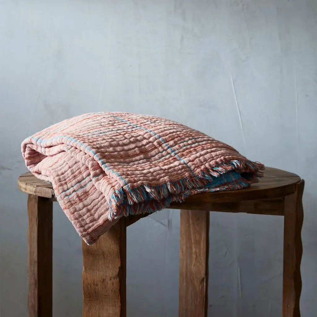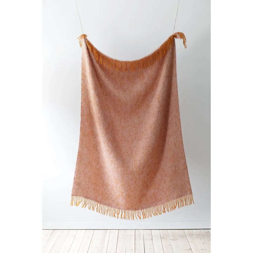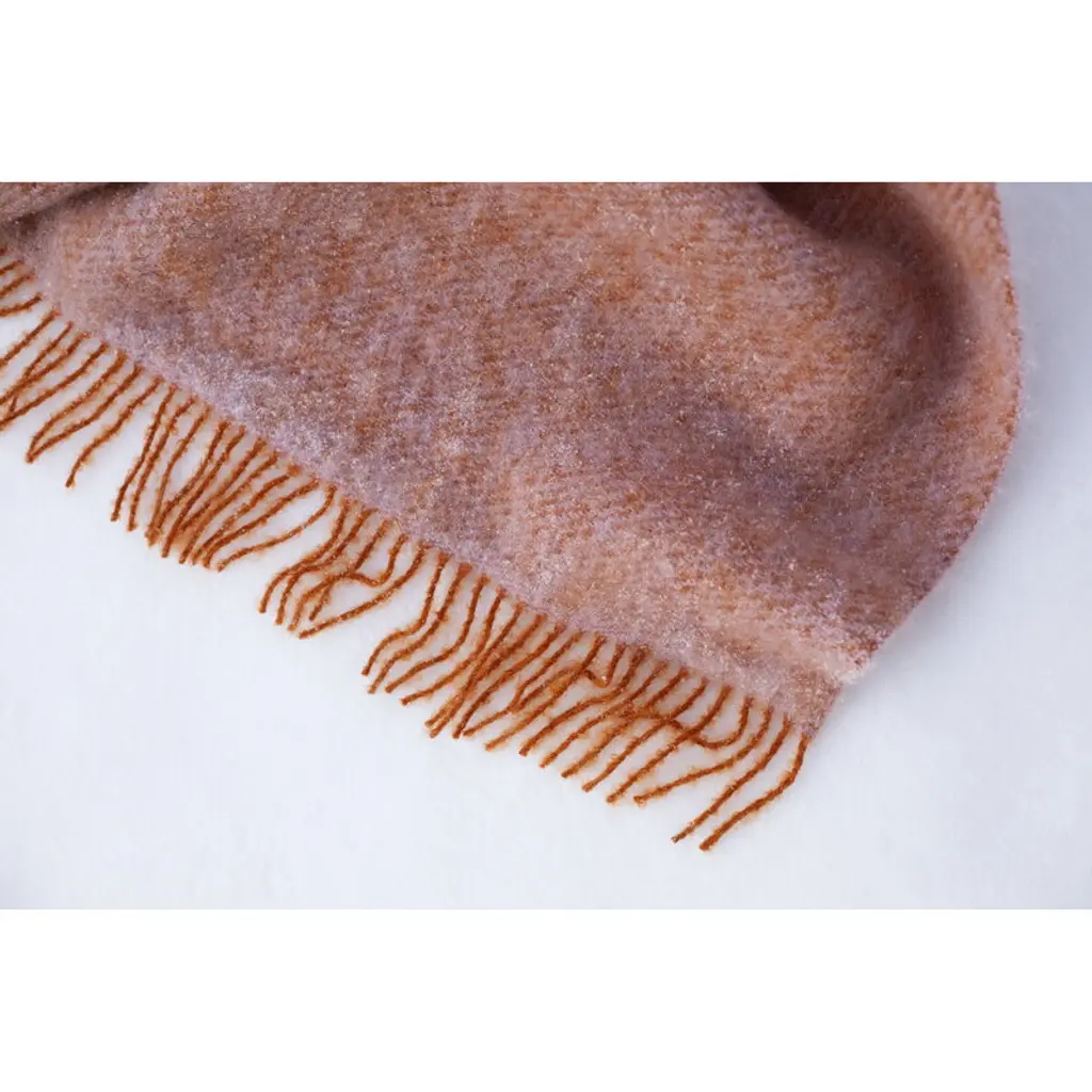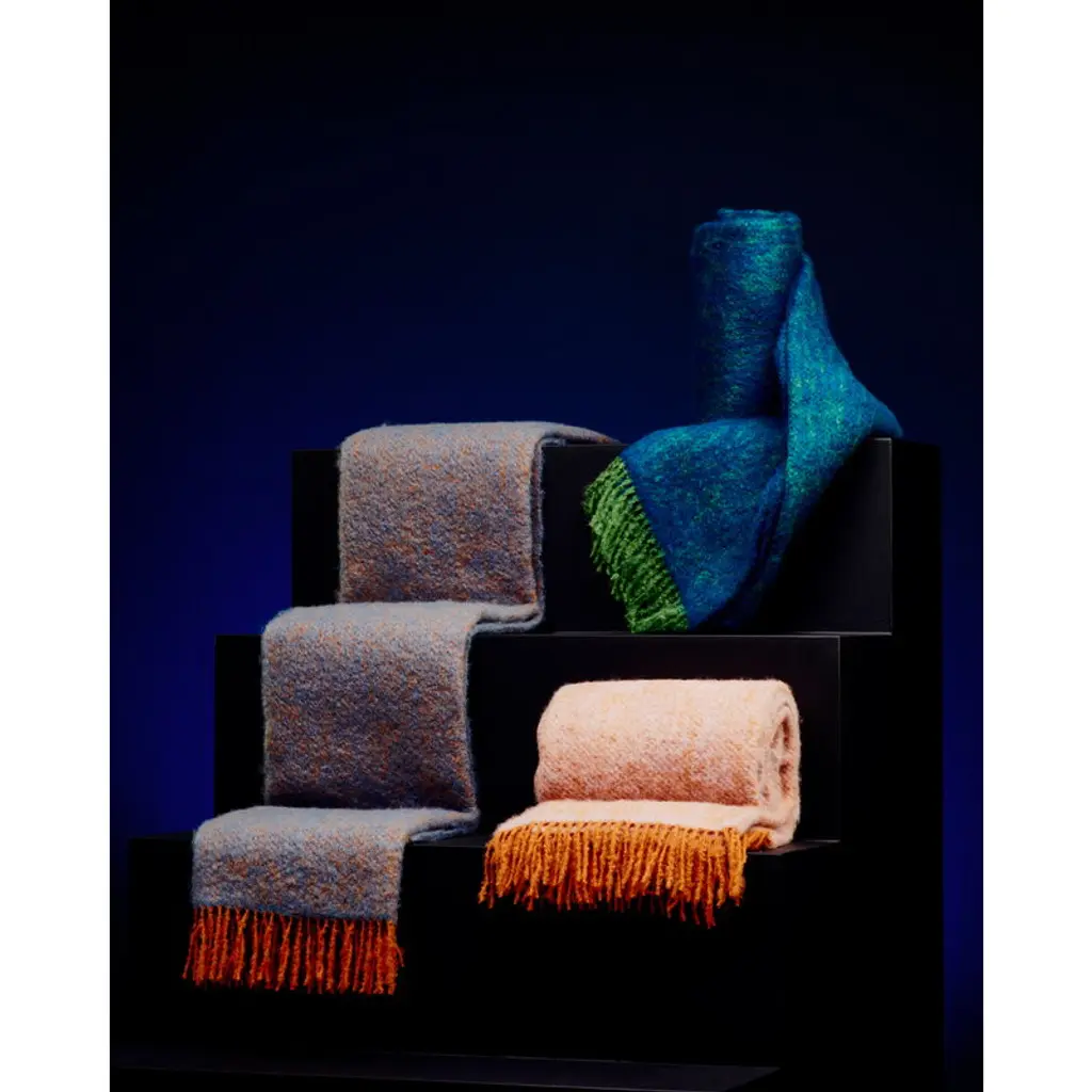 The Revontuli mohair blanket by Lapuan Kankurit is colored in beautiful, rich tones inspired by the northern lights – Revontuli is Finnish for Aurora Borealis. The luxuriously soft mohair blanket, designed by Elina Helenius, is woven in two colors and has fringes on the edges. The Revontuli blanket is made of mulesing-free South African mohair and New Zeeland wool in a Lithuanian sewing company.