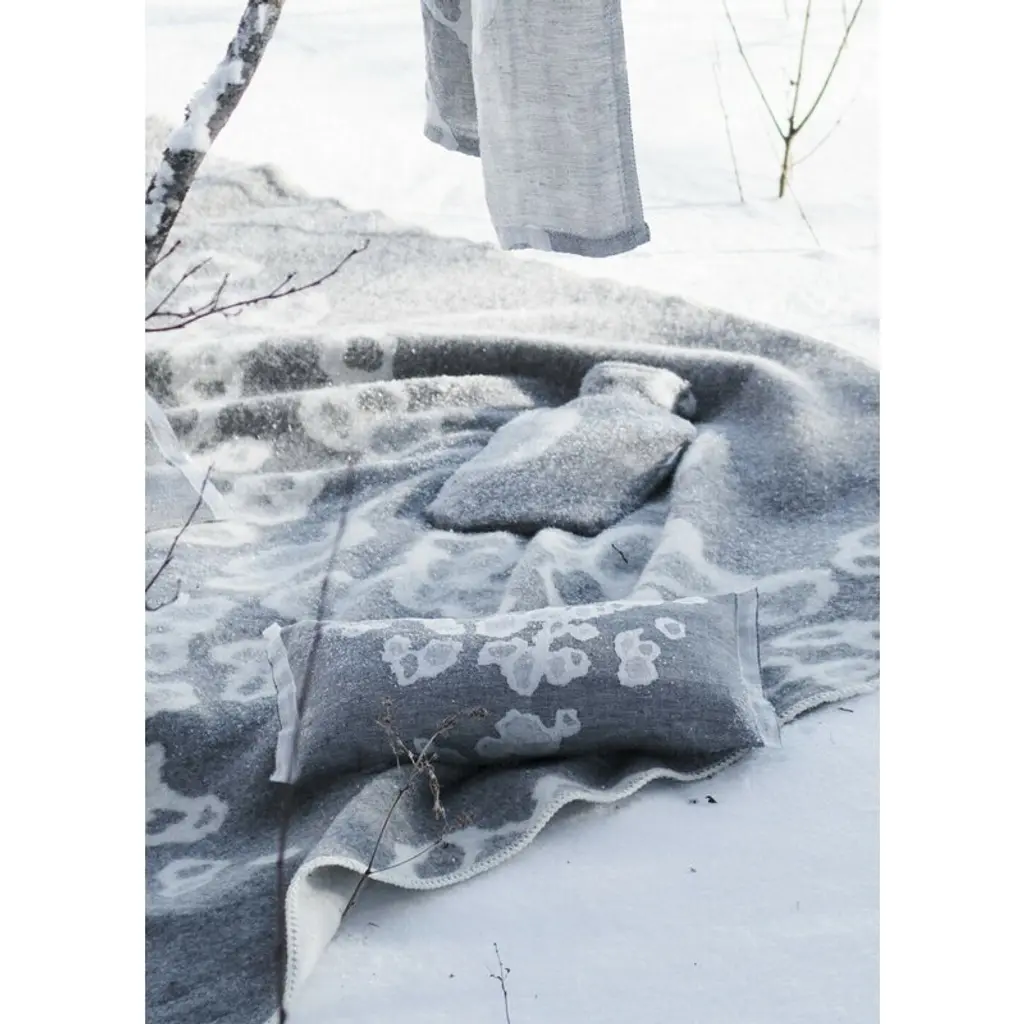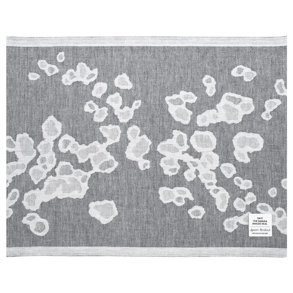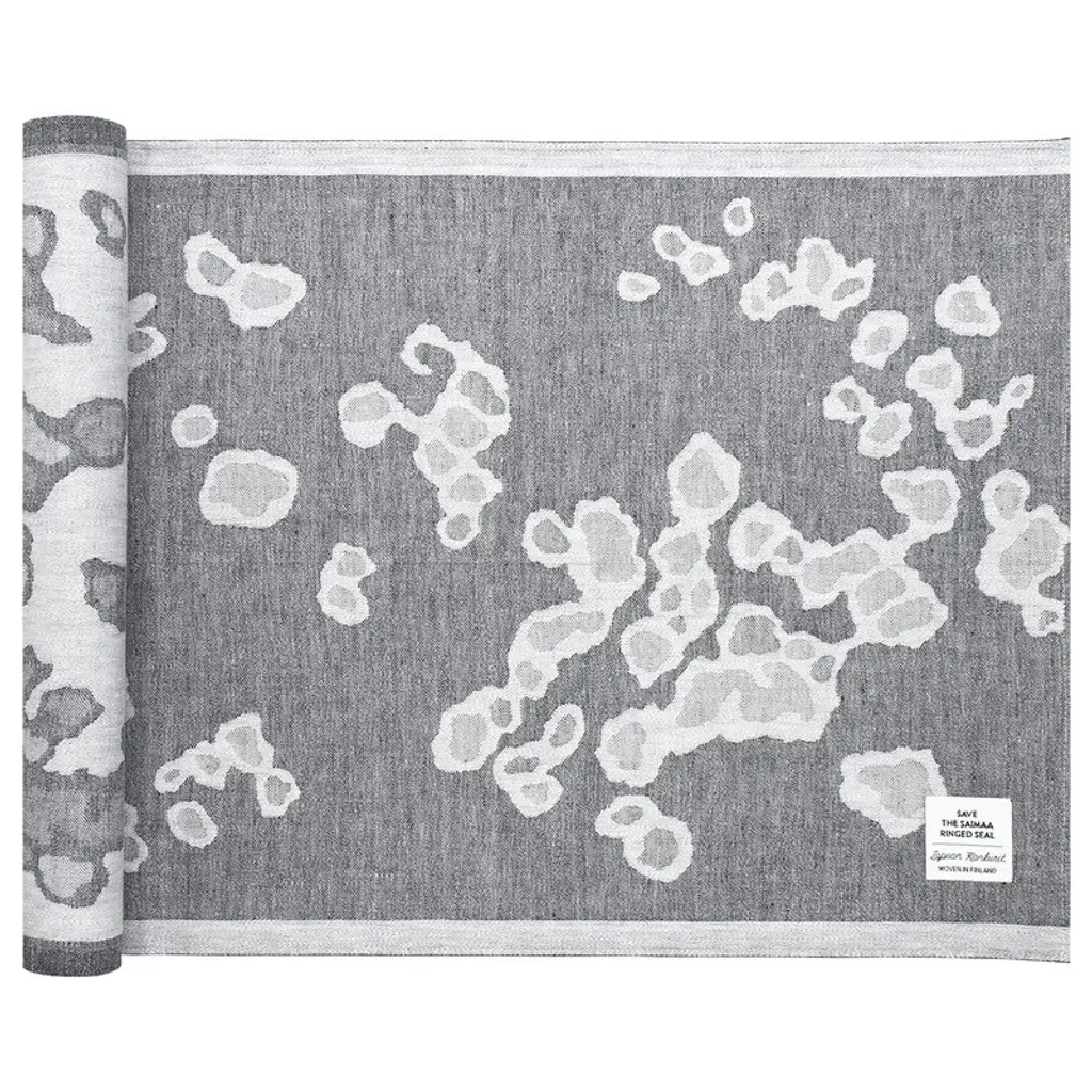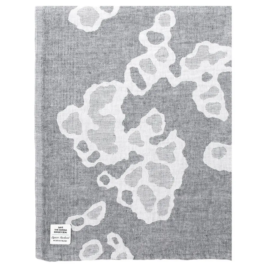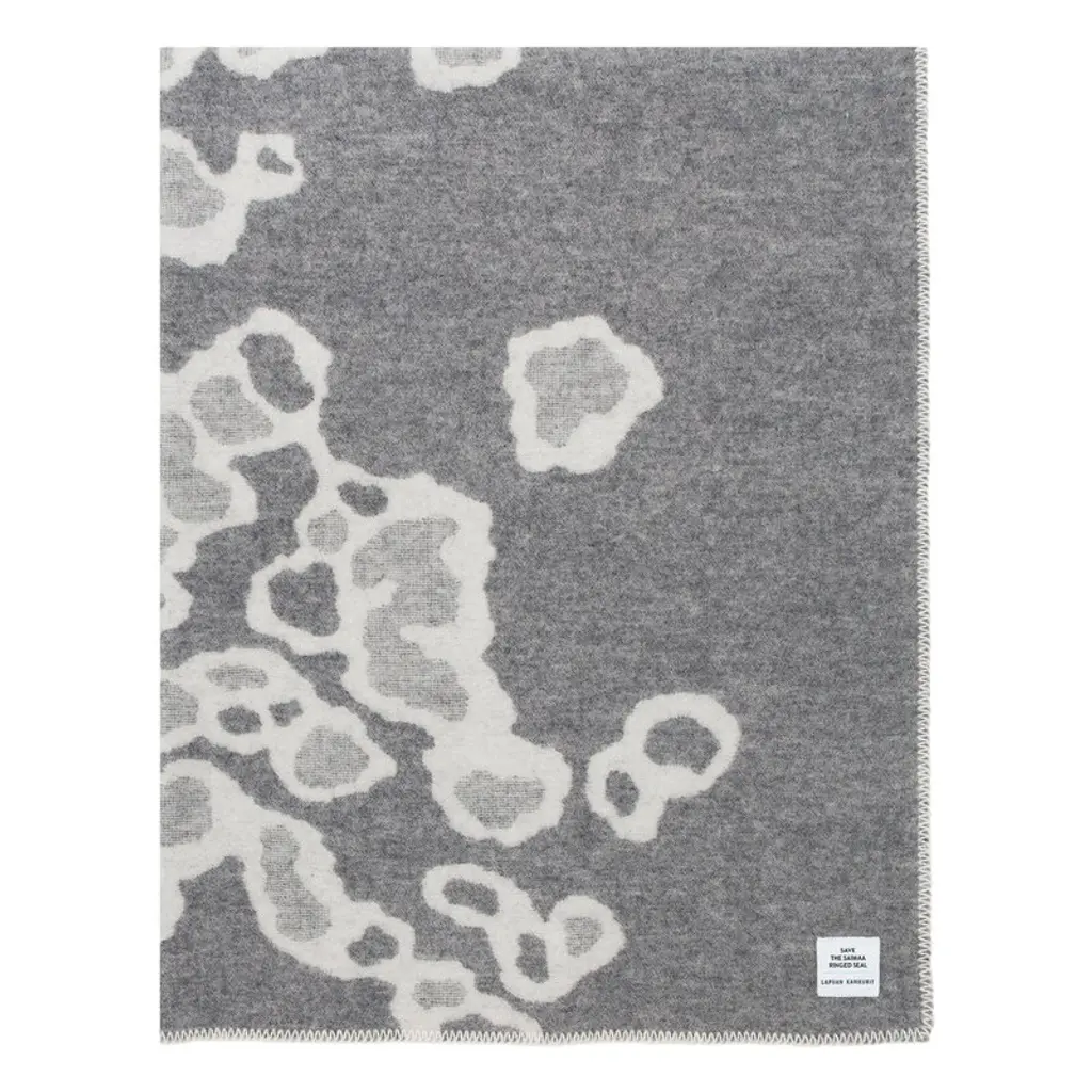 The Saimaannorppa wool blanket by Lapuan Kankurit is adorned with Kaarina Tiainen’s graphic, white-gray pattern that mimics the spots of the Saimaa ringed seal, an endangered seal living only in Lake Saimaa, Finland. Finished with sewn edges, the pleasantly soft blanket is made of mulesing-free New Zealand wool in Lapuan Kankurit's sewing company in Finland. With the Saimaannorppa collection, Lapuan Kankurit participates in protecting the endangered seal: for every sold blanket, 4,05 € is donated to the Finnish Association for Nature Conservation for the protection of the Saimaa ringed seal. The products of the collection have a woven Save the Saimaa Ringed Seal logo.