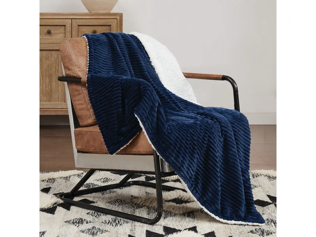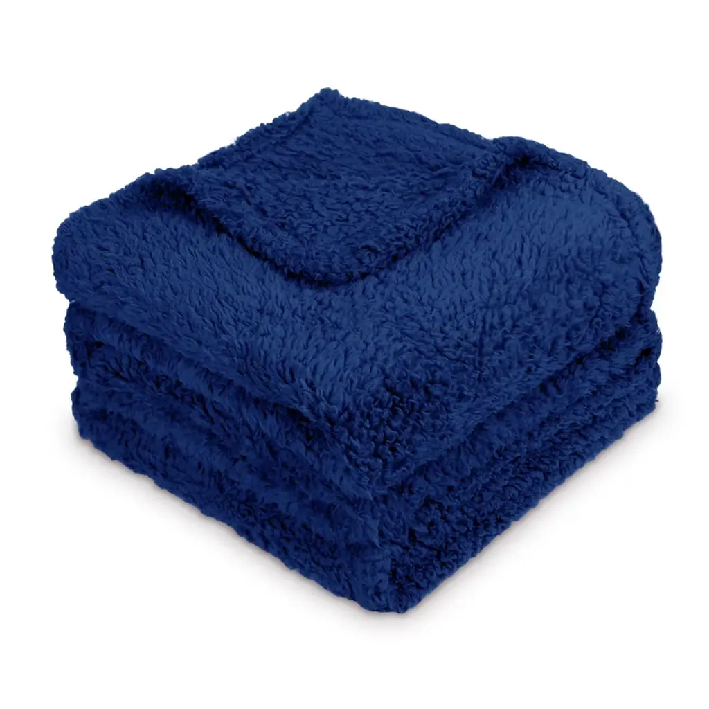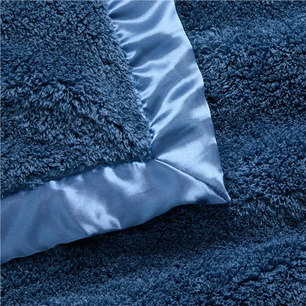Satin Trim Light Navy Blue Plush Baby Stroller Blanket