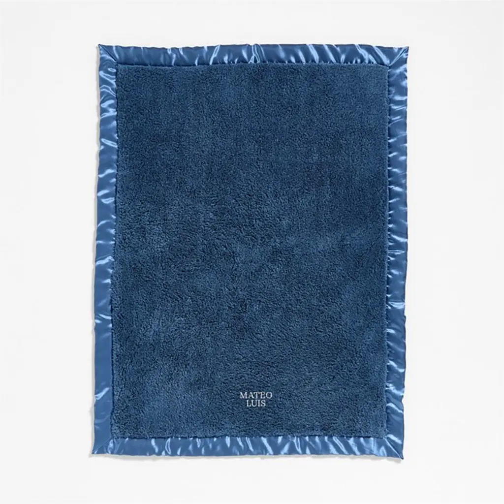 All the feels. The fleecy texture of our satin-trimmed baby blanket in vibrant light navy blue is so soft, you'll wish it came in adult sizes too. It features a satin edge for a refined look and can be personalized for an extra-special baby gift.
