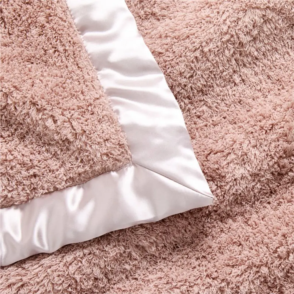 Satin Trim Rosy Lilac Plush Baby Stroller Blanket