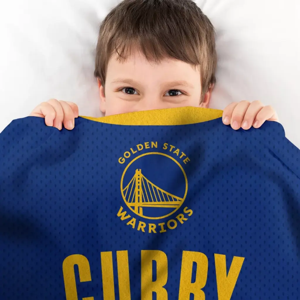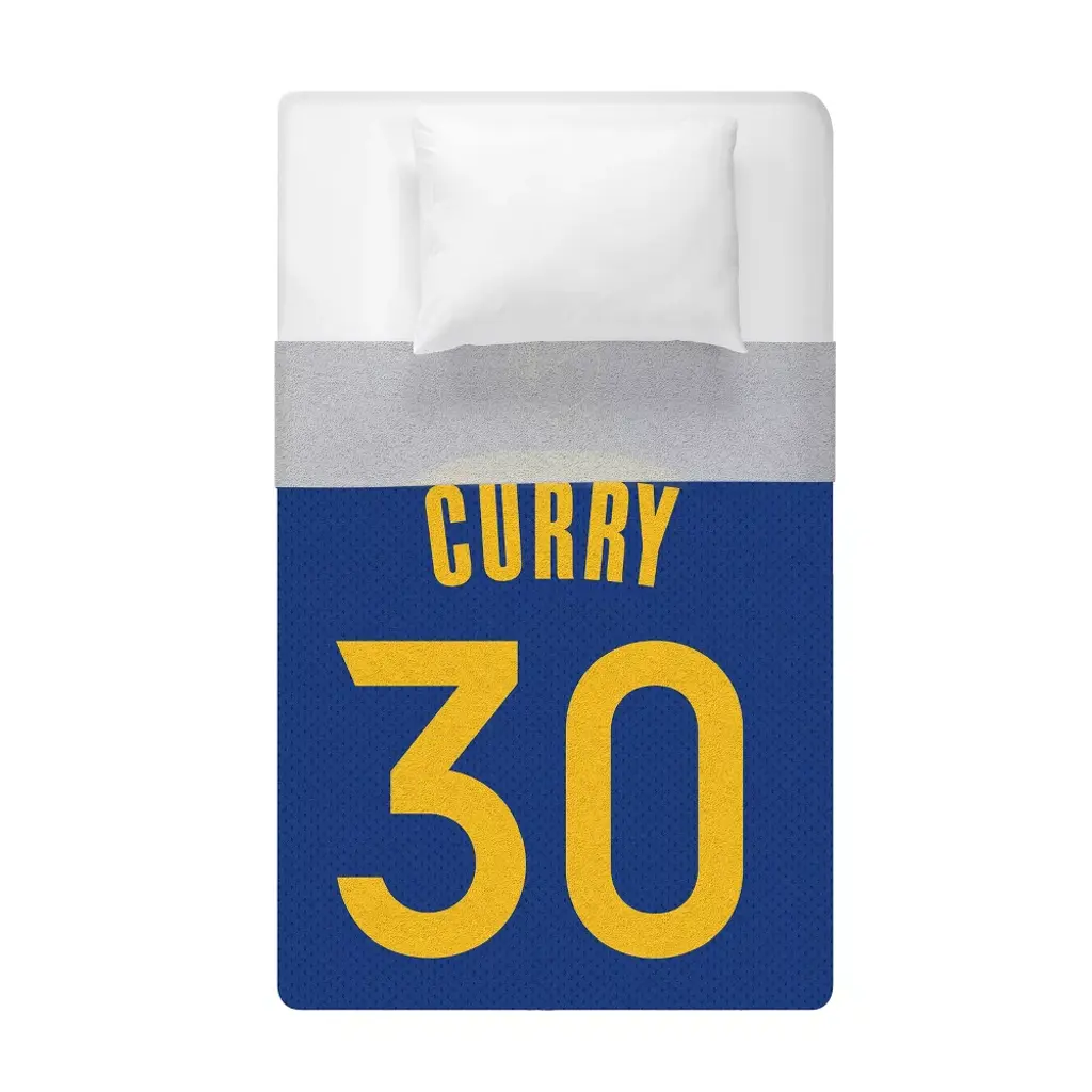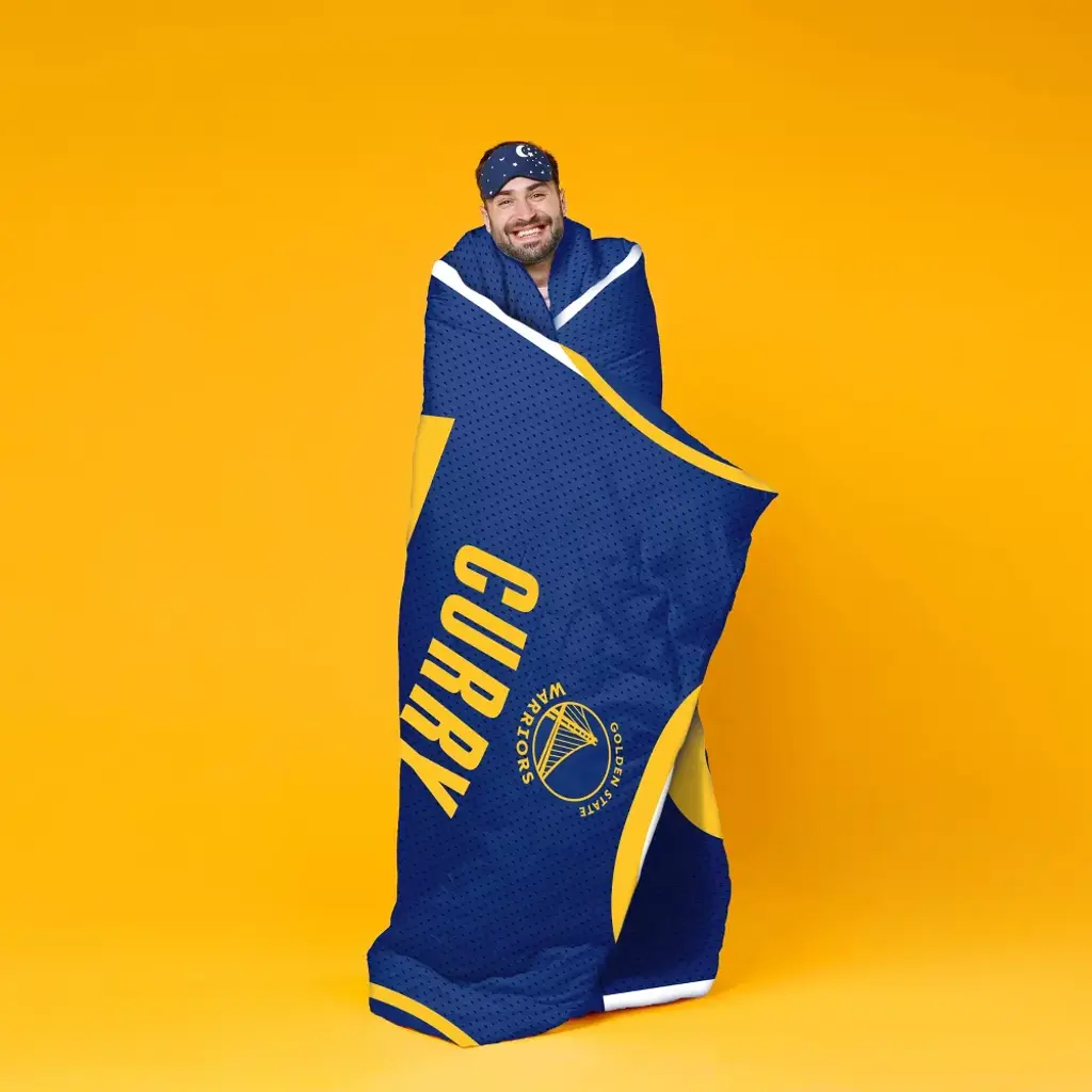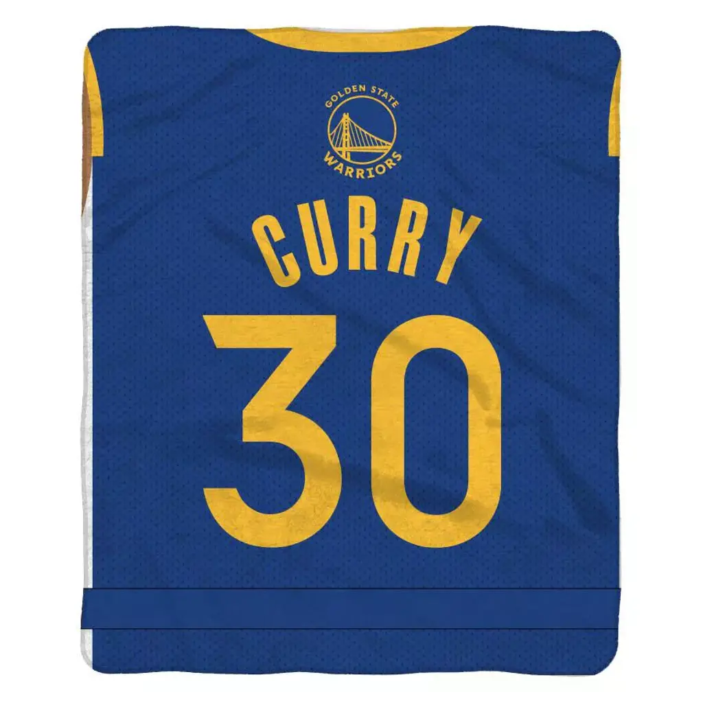 Sleep Squad Golden State Warriors Stephen Curry 60 x 80 Raschel Plush Blanket An NBA Jersey Throw. This Golden State Warriors Stephen Curry jersey throw blanket is 60 x 80, made with super-soft Raschel knit with a soft and luxurious feel. Made with 100% polyester, it is machine washable, officially licensed by the NBA, NBA Players and the Golden State Warriors.Great for chilling on the couch while watching the Warriors, picnics, camping and chilling. The size can allow this throw to be used as a twin size bedspread.