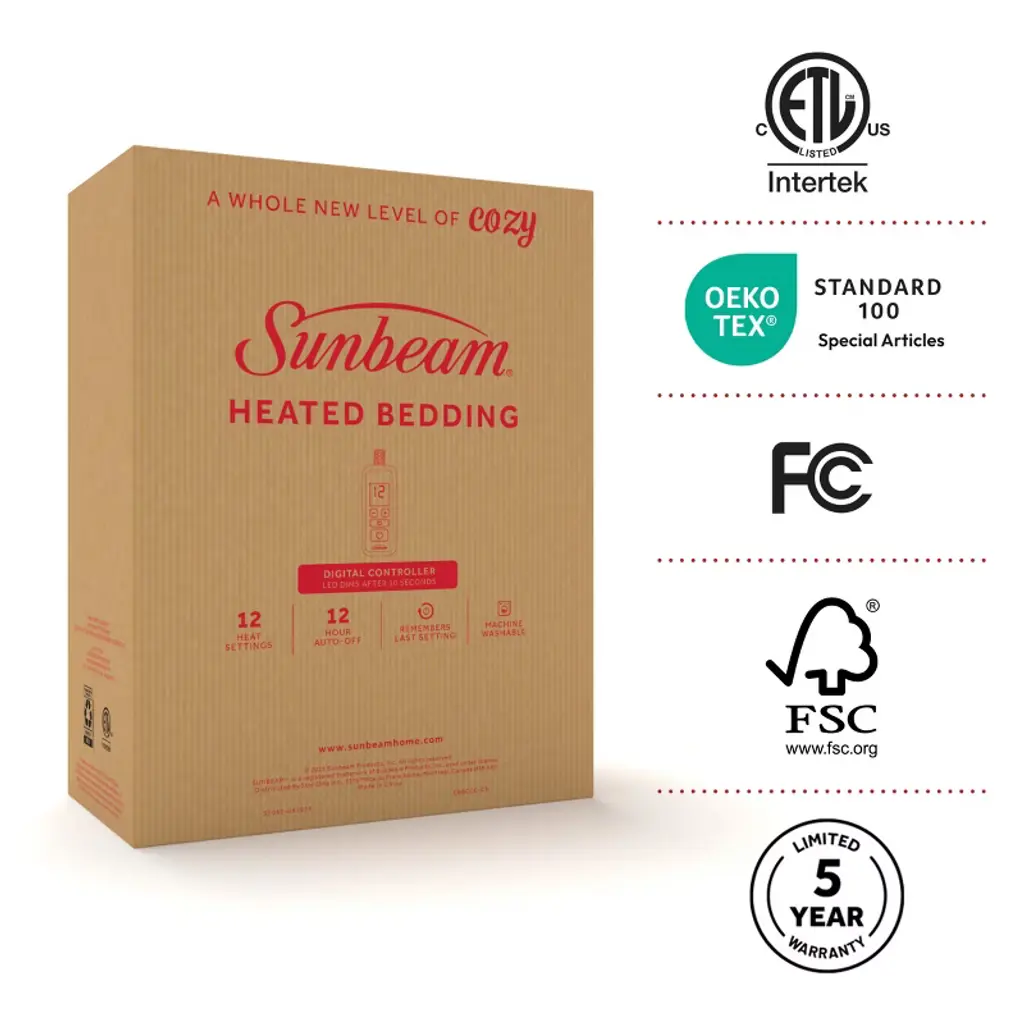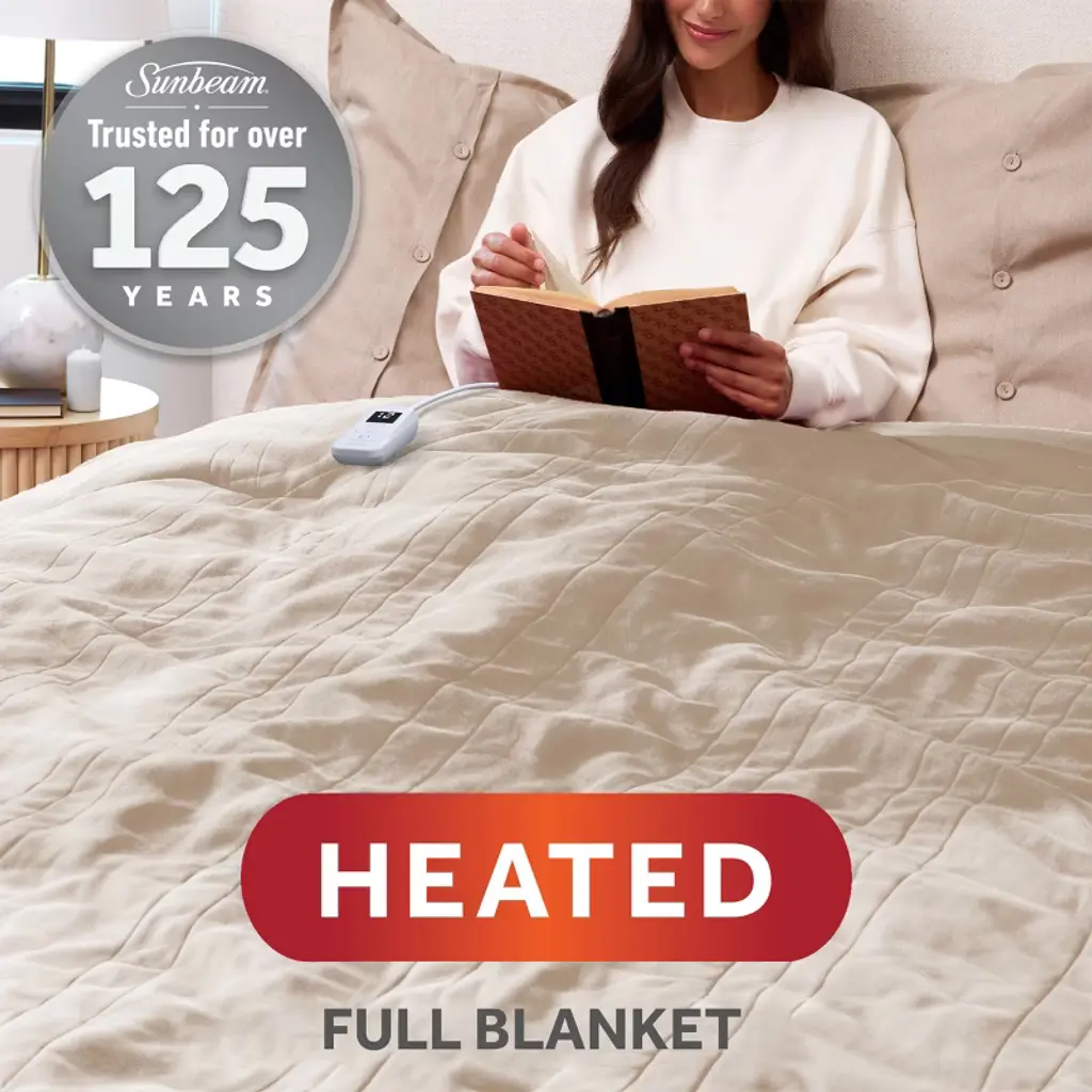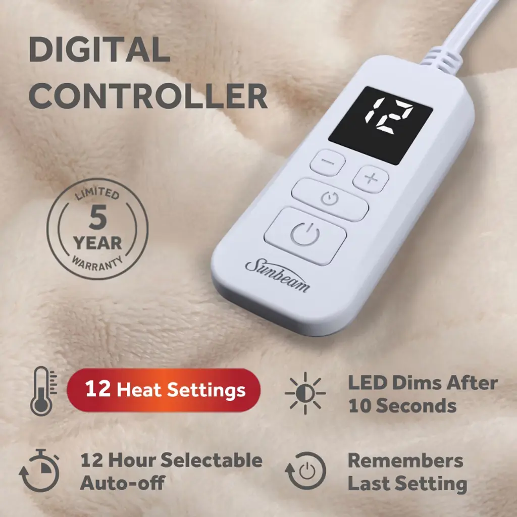 Sunbeam Full Heated Blanket 12 Heat Royal Posh Velvet Champagne