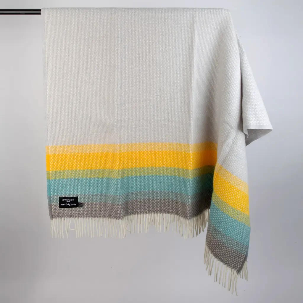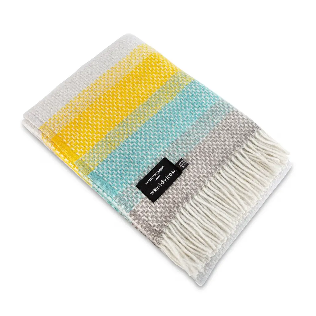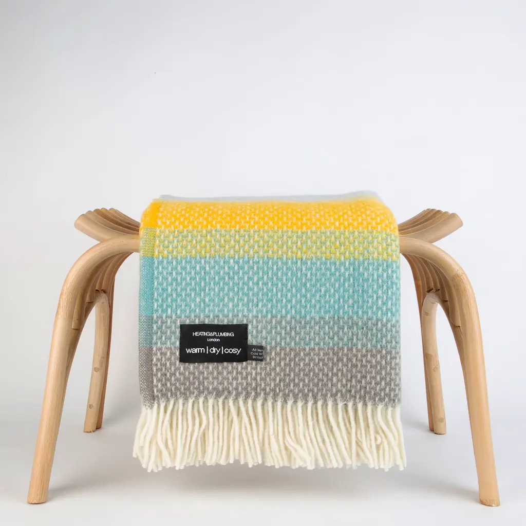 This super fluffy blanket is made of pure new wool. With its yellow, turquoise and grey tones, it will look stunning in any room, giving that touch of cosiness that makes a house into a home.The Heating & Plumbing London blanket collection features 47 different colours & designs.