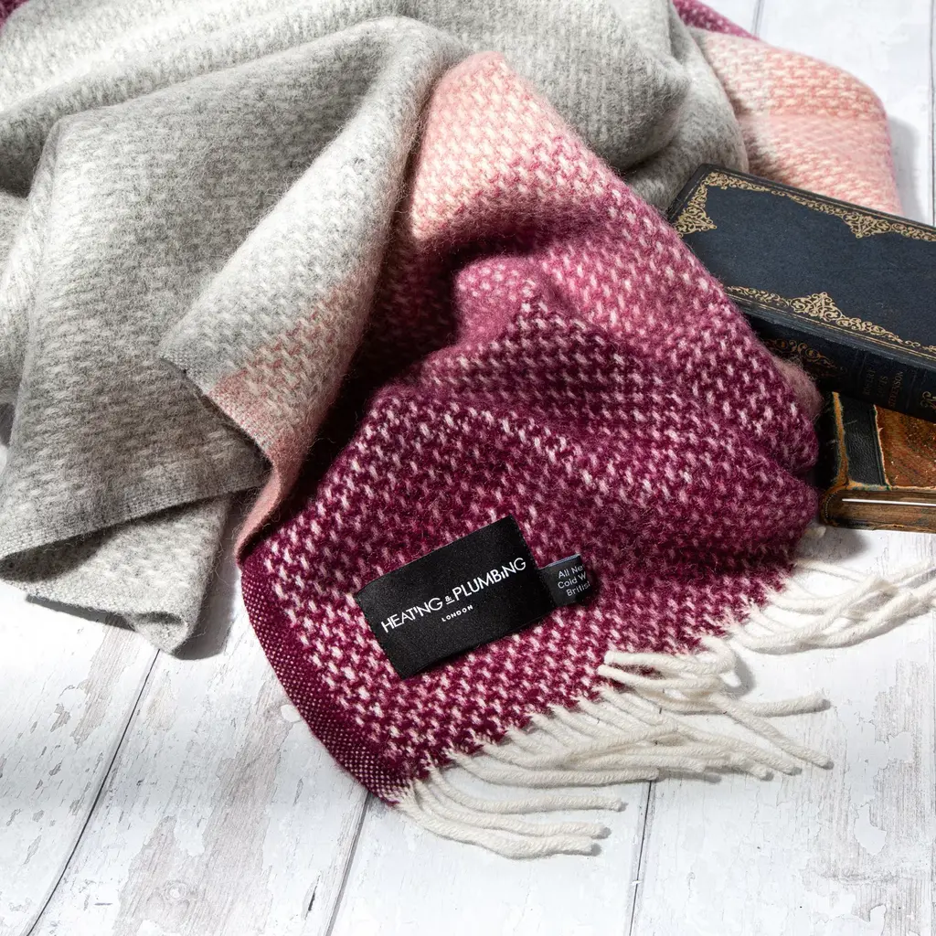 This super fluffy blanket is made of pure new wool. With its grey tone and shades of wine and pink, it will look stunning in any room, giving that touch of cosiness that makes a house into a home.The Heating & Plumbing London blanket collection features 47 different colours & designs.